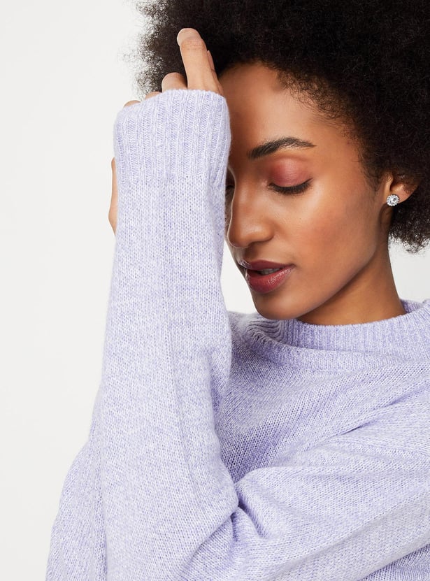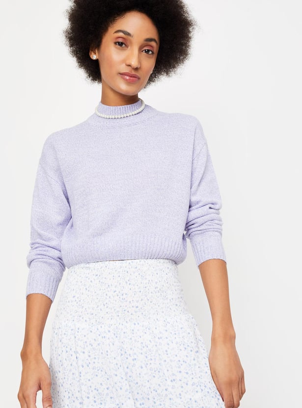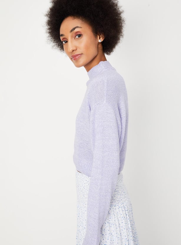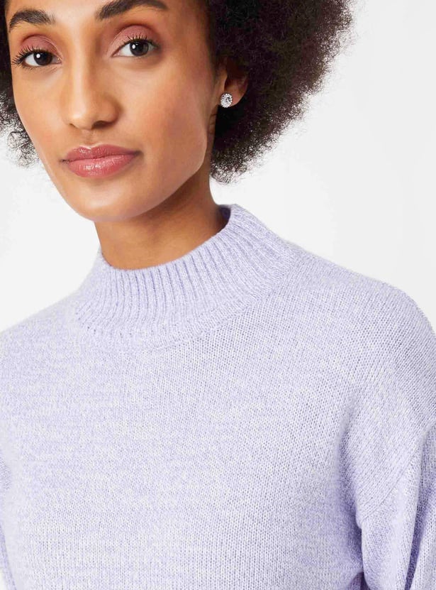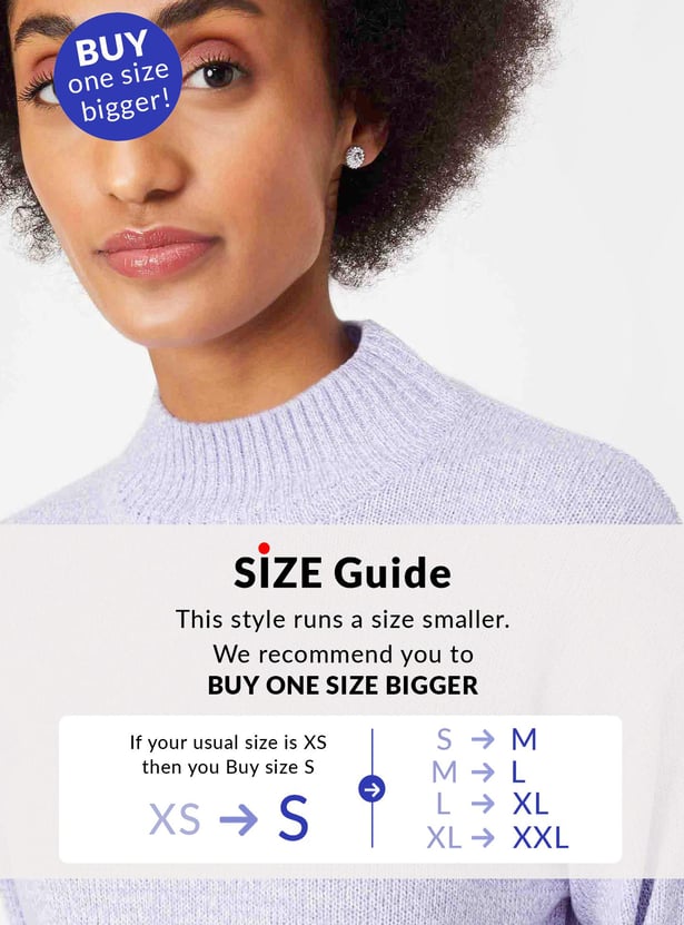 Make your winter outing a cozy session with this textured sweater. It flaunts a high neck and full sleeves. It looks best when teamed with a skirt and lace-up shoes.