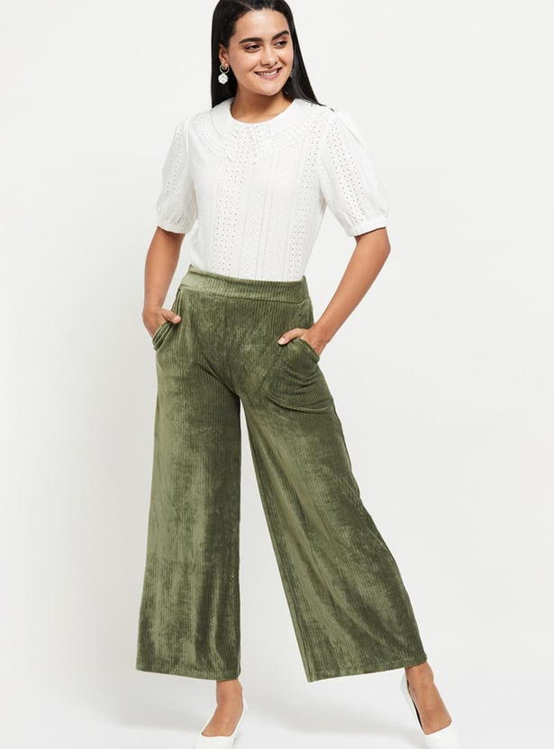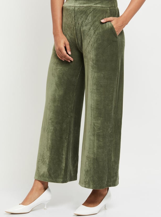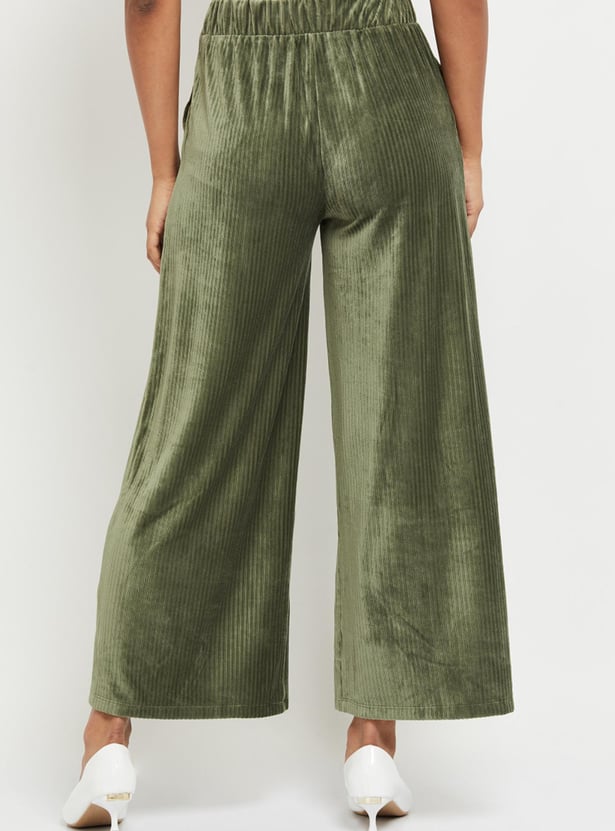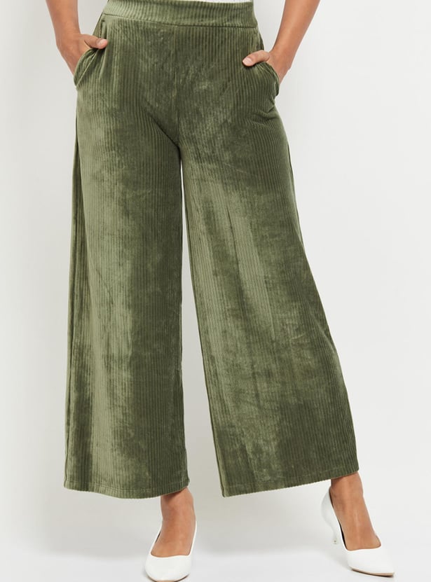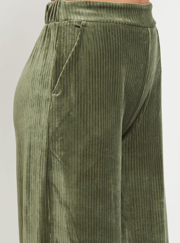 Women Textured Elasticated Waist Flared Corduroy Trousers