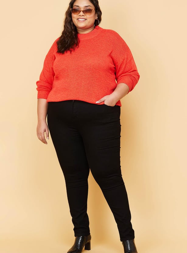 Women Textured High Neck Crop Sweater