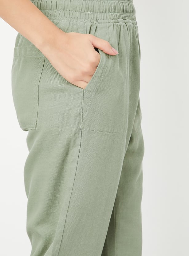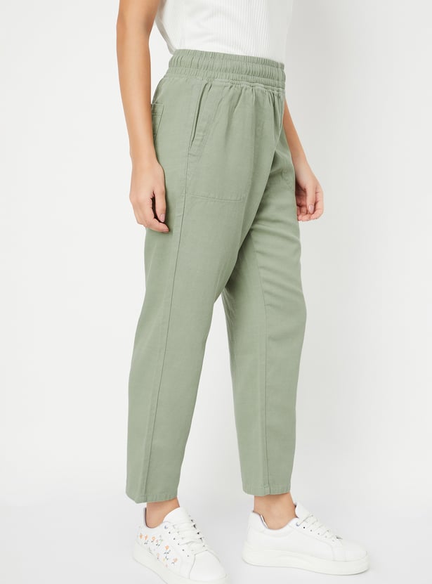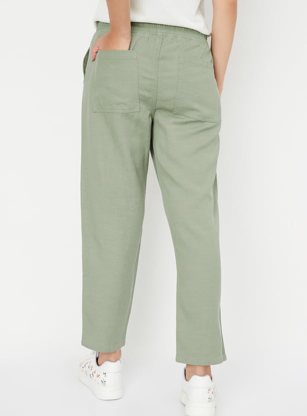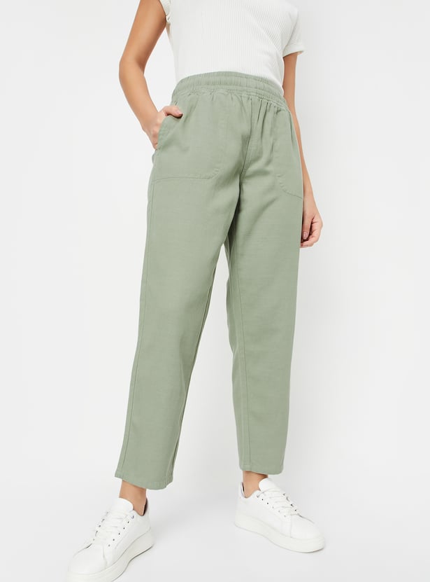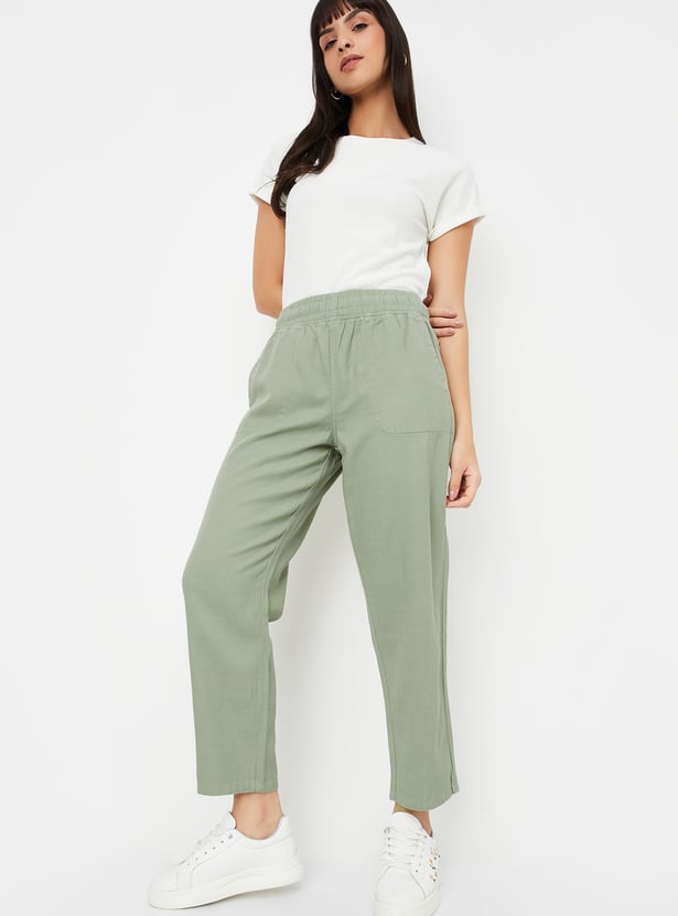 These textured straight-fit trousers offer a perfect blend of comfort and style. Featuring an elasticated waist for a relaxed fit, side and back pockets provide added practicality without compromising on design. Model Size :