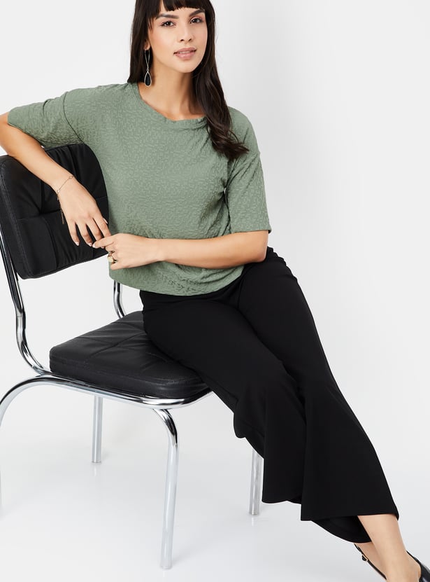 This textured t-shirt features a classic round neck and half sleeves, offering a comfortable and stylish fit. The unique texture adds a touch of visual interest, making it a versatile piece for everyday wear.