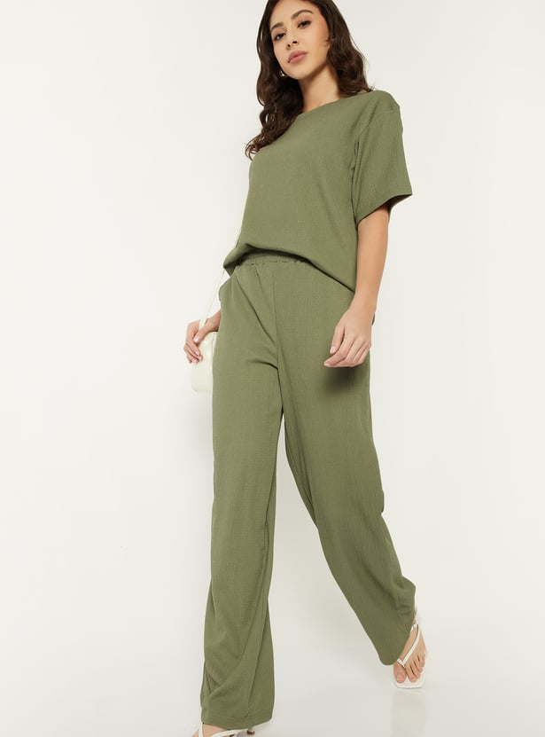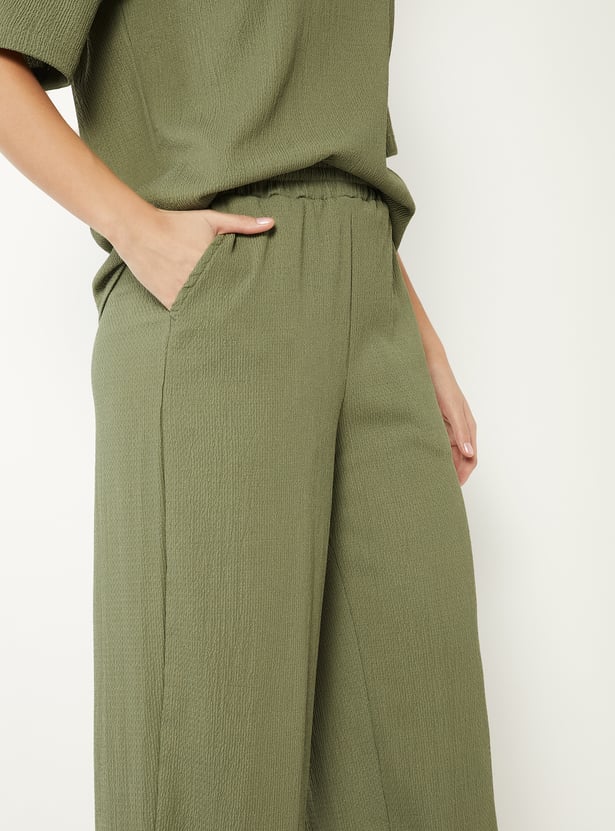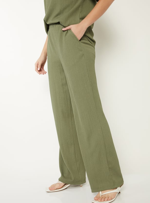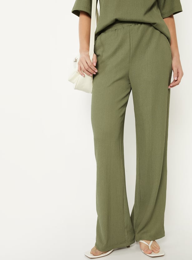 Upgrade your everyday style with these textured trousers. Designed with an elasticated waist for a comfortable fit and practical pockets for added convenience, they offer a relaxed yet polished look.