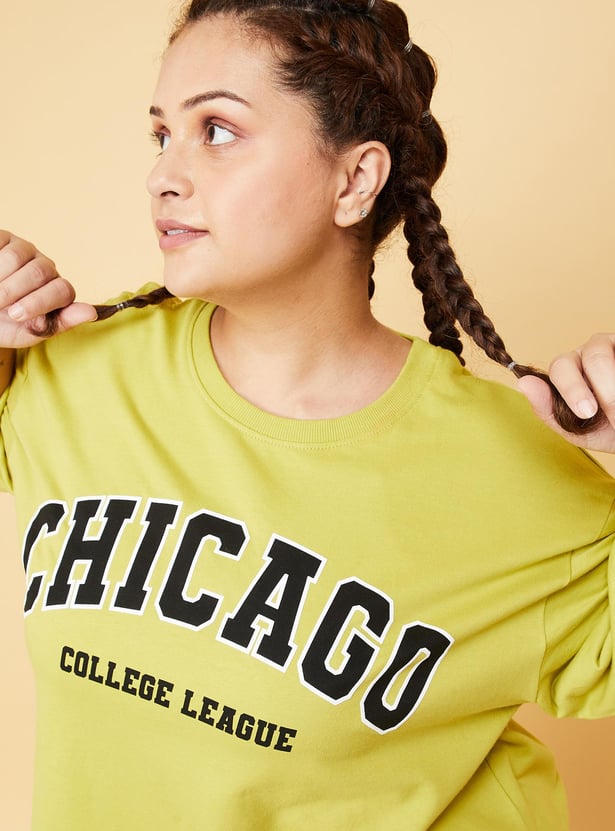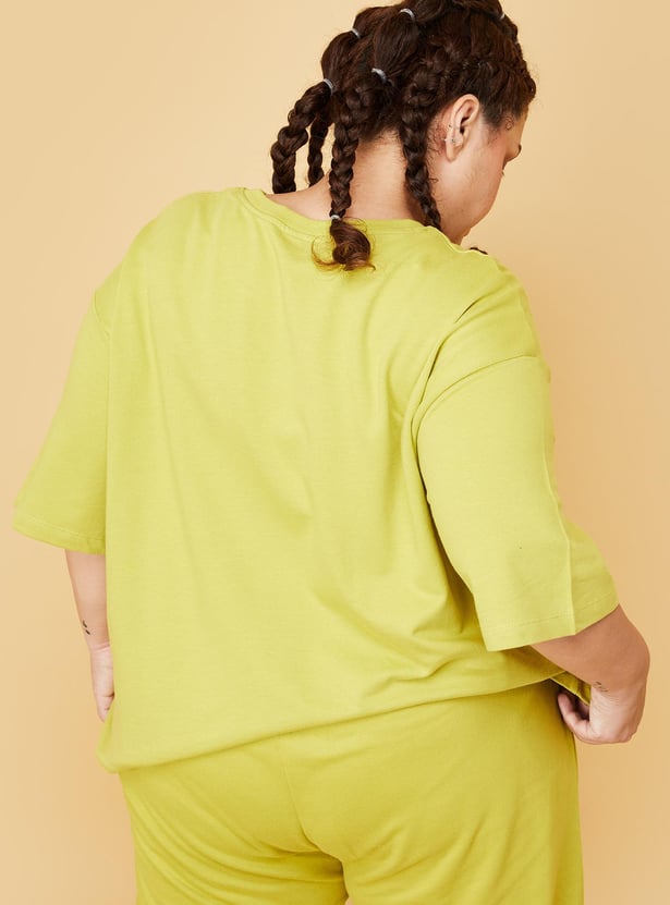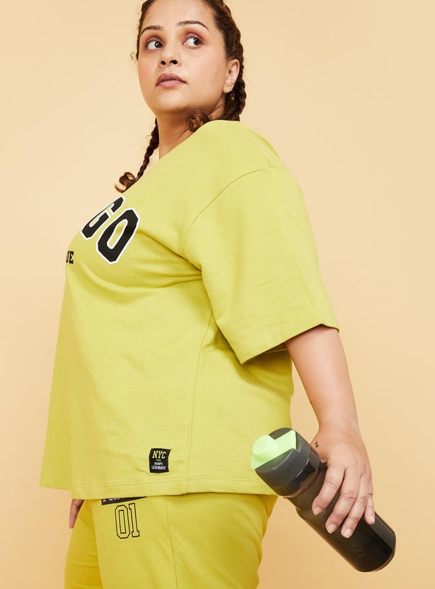 Push yourself harder with every workout in the comfort of this T-shirt. It features a graphic print on the chest, a round neckline, drop shoulders, and half sleeves. Model Size :