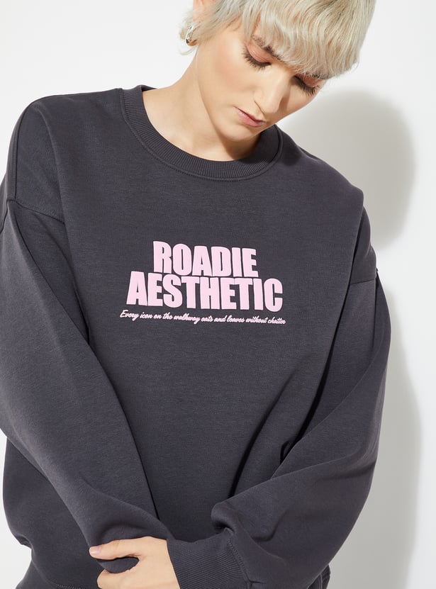 Stay cozy and stylish with this printed oversized sweatshirt, designed with a classic crew neck and full sleeves for a relaxed, laid-back vibe. Model Size :