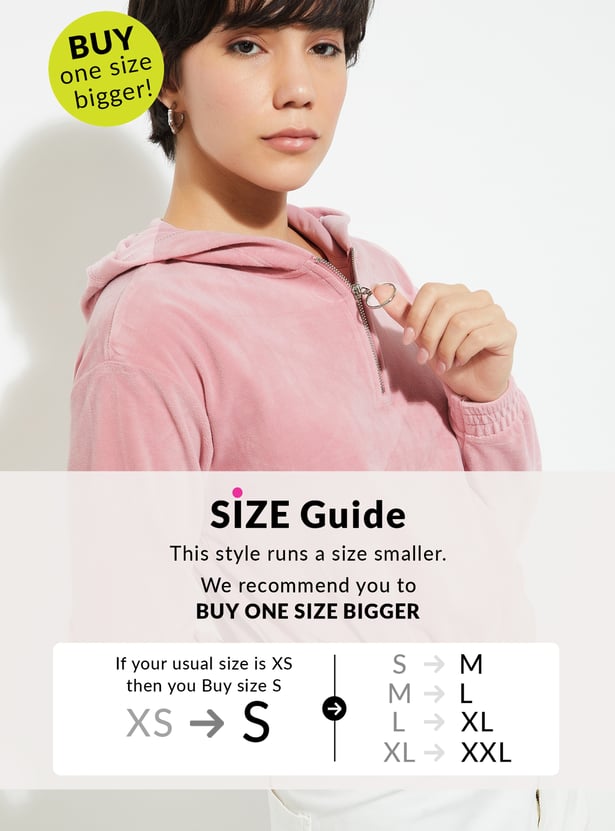 Level up your winter style with this urban-inspired sweatshirt. Featuring a hooded neck with a sleek zip closure, full sleeves, and an elasticated hem, it brings a laid-back yet edgy vibe to your wardrobe.