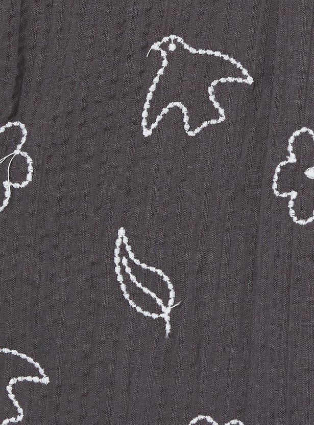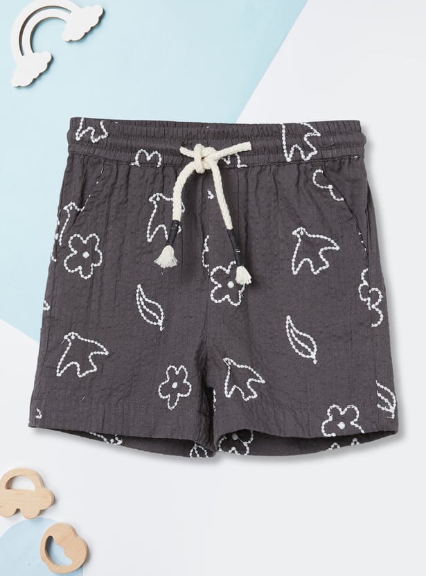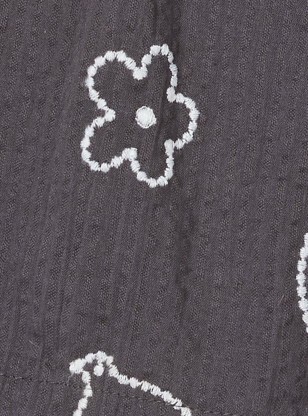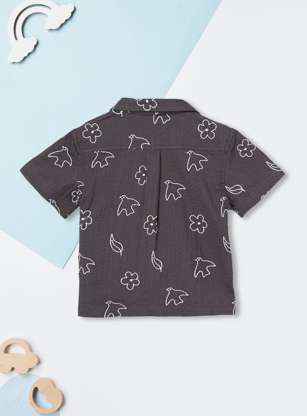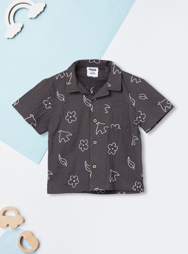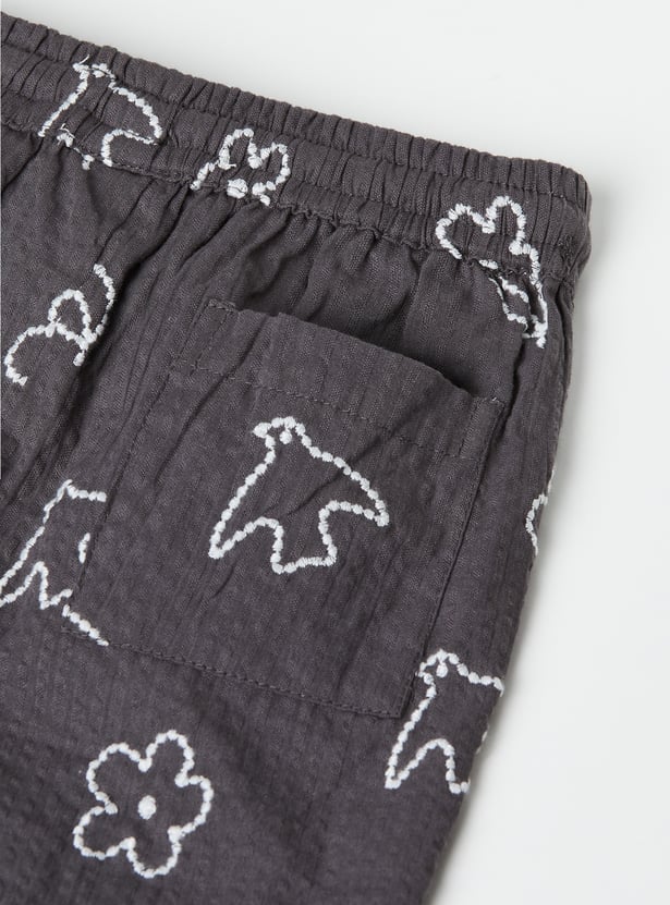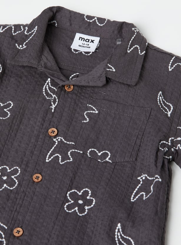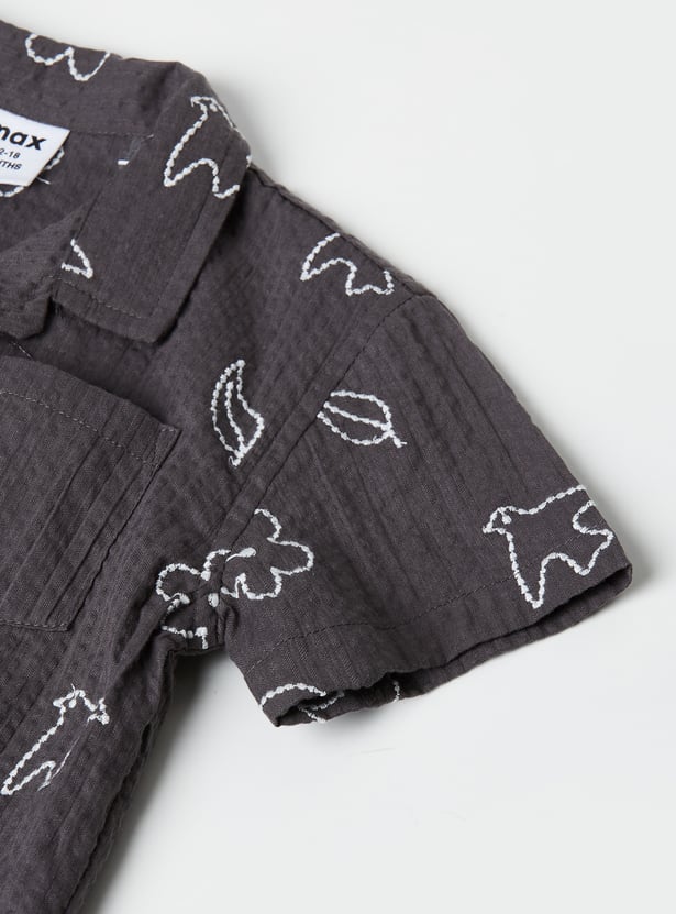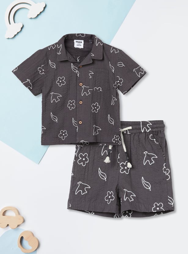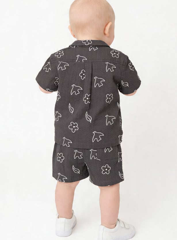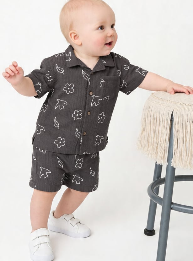 Emphasising comfort for your little one, this shorts set includes an embroidered half-sleeved shirt with a resort collar and matching elasticated shorts for extra style.