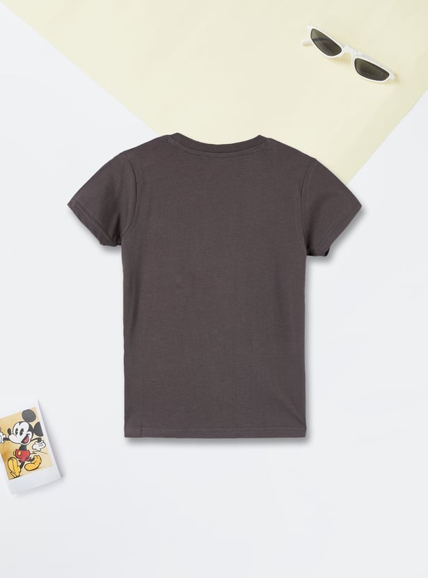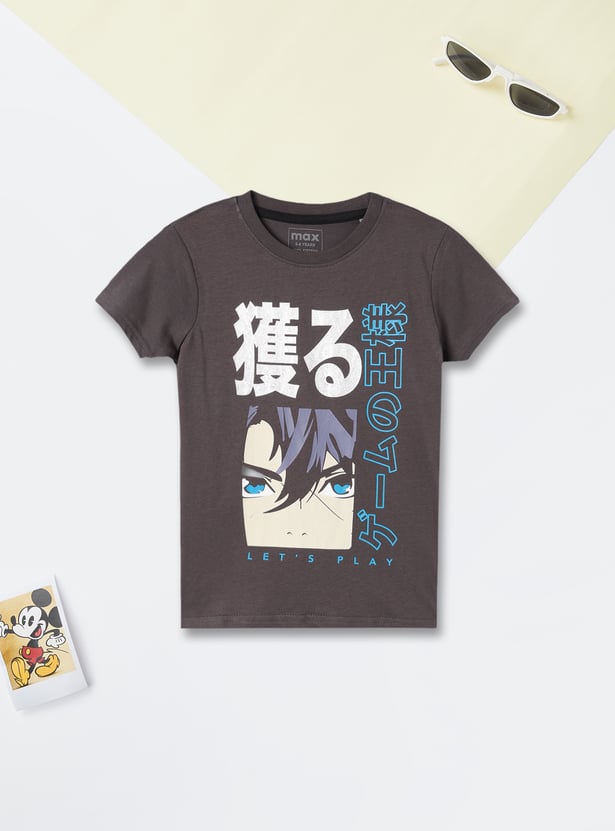 Let your little one make a statement in this T-shirt. It has a crew neck and half sleeves. The graphic print adds a striking look to his outfit.