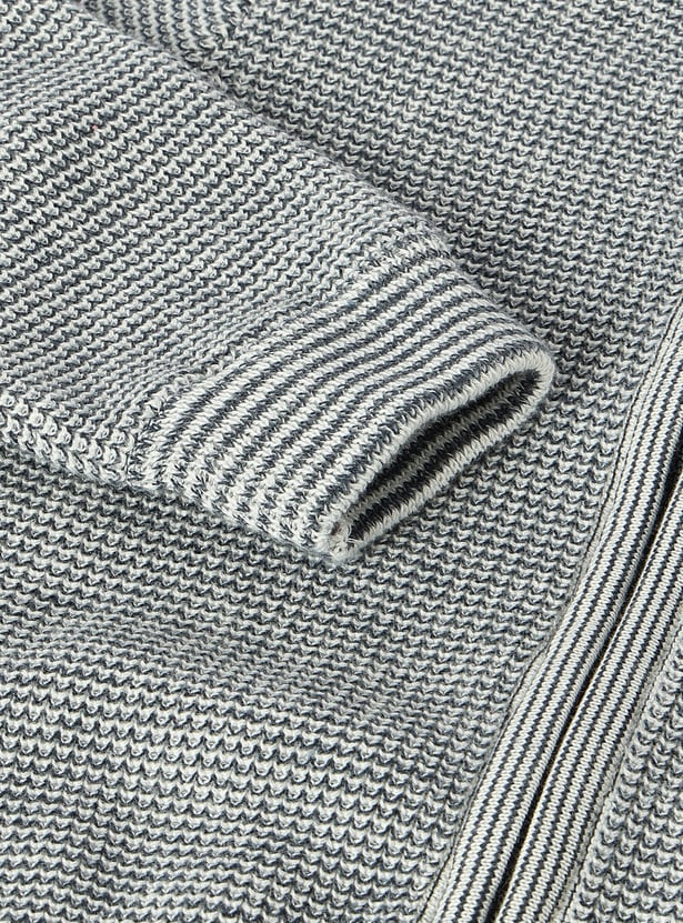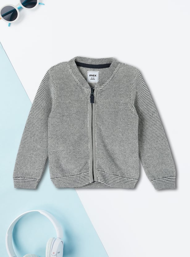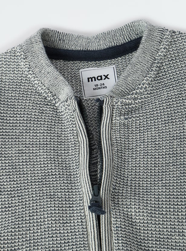 Induce comfort and style into your child's winter wardrobe with this cosy sweater. It features a baseball collar, zip closure, and full sleeves, offering both warmth and a trendy look.