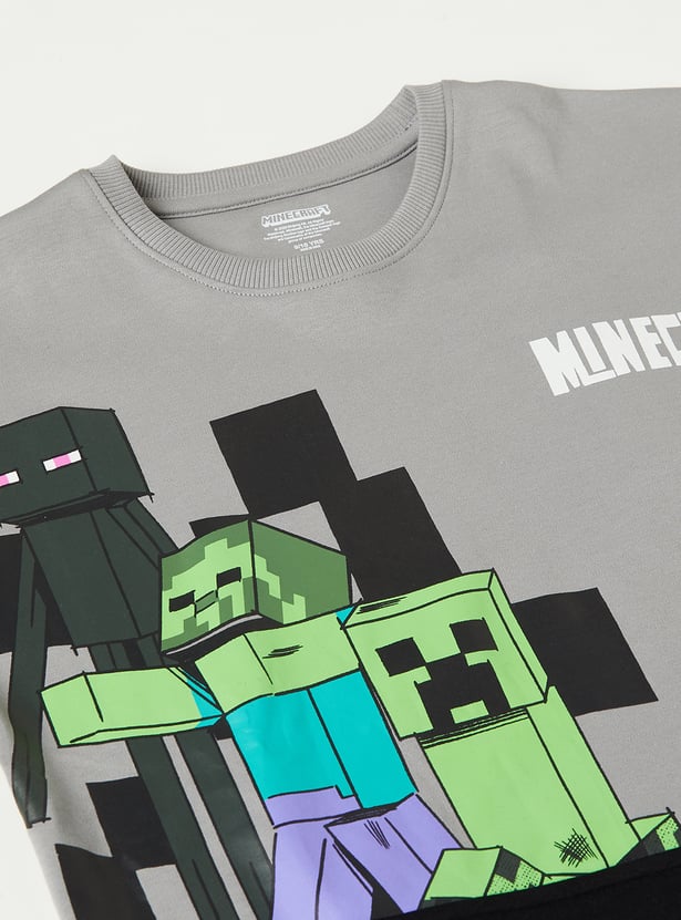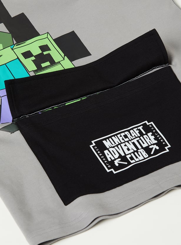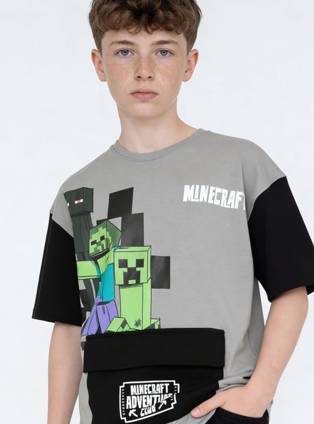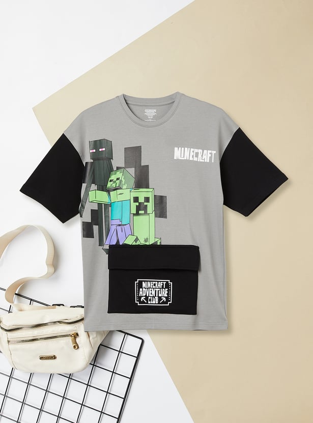 This Minecraft oversized print T-shirt is a fun and casual piece for everyday wear. Featuring a crew neck and half sleeves, it offers a classic silhouette with comfortable styling.