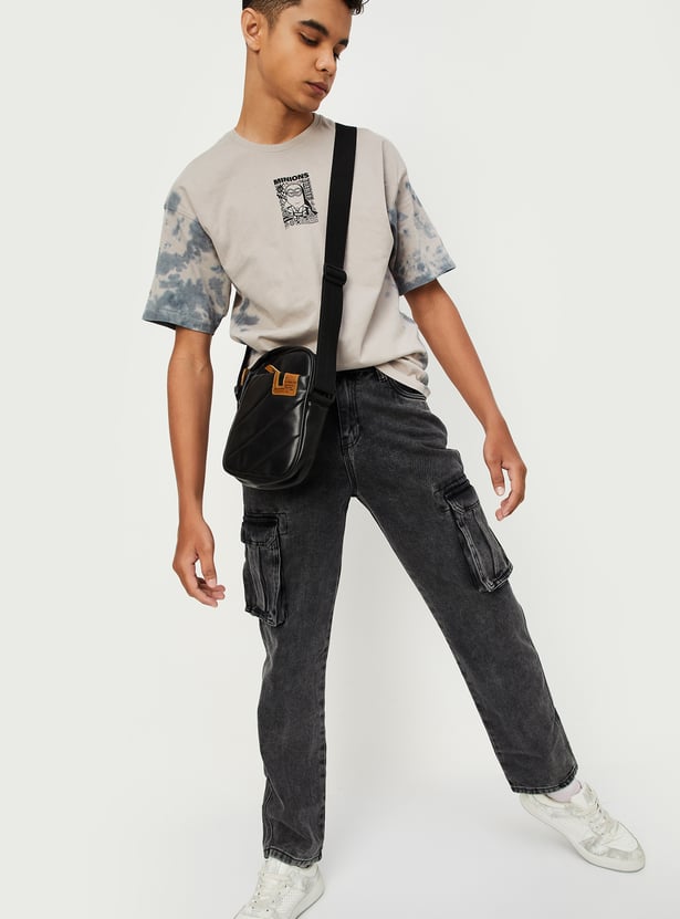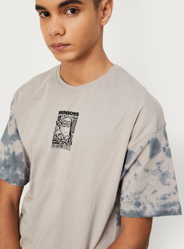 Make every day an adventure with this T-shirt. Featuring a playful Minion graphic and an oversized fit, this tee combines comfort with style. The tie and dye prints add to the visual appeal.