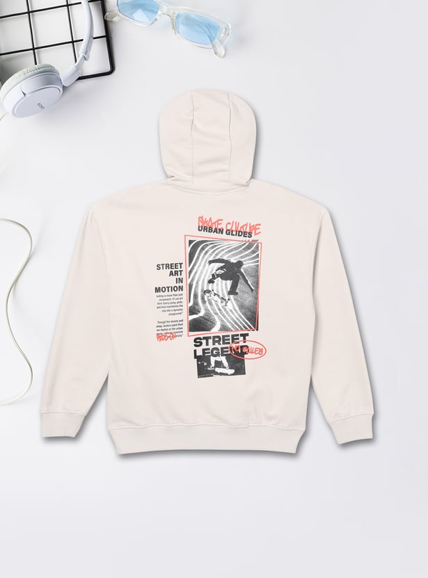 Stay cozy and stylish with this printed hooded sweatshirt, featuring full sleeves and kangaroo pockets for comfort and convenience. The vibrant print adds a fun, casual touch to your everyday wardrobe.