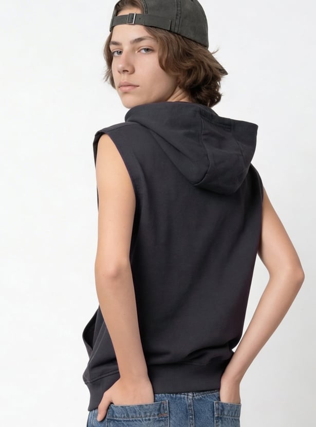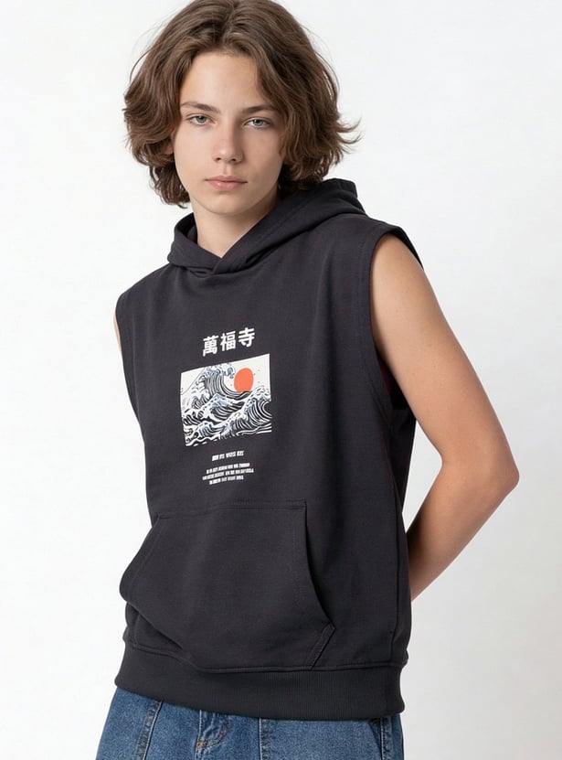 Bring bold energy to your look with this printed hooded t-shirt. Designed sleeveless for a sporty edge, it combines casual comfort with standout style. The hood adds a streetwear vibe, while the print makes it eye-catching and versatile for everyday wear.