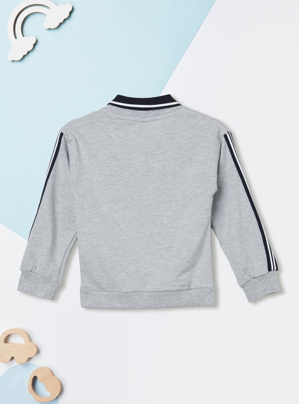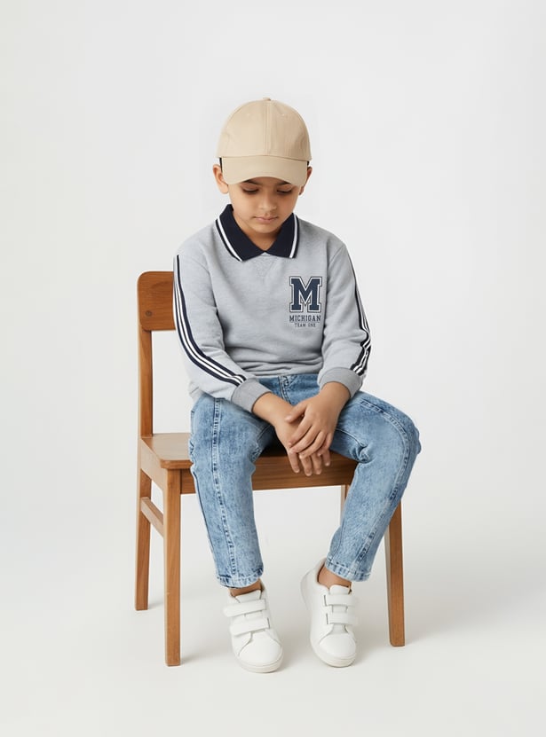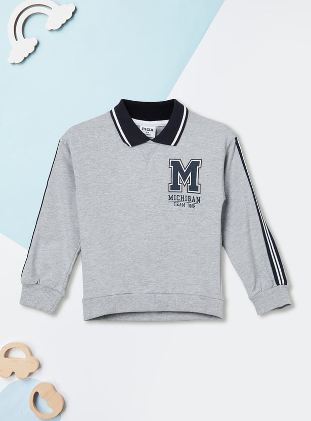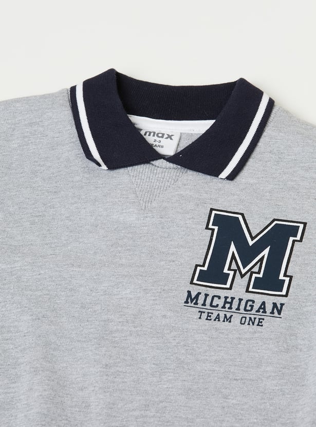 Step out in casual comfort with this printed oversized T-shirt. Featuring a collared neck, full sleeves, and a ribbed hem, it combines relaxed style with a modern twist.
