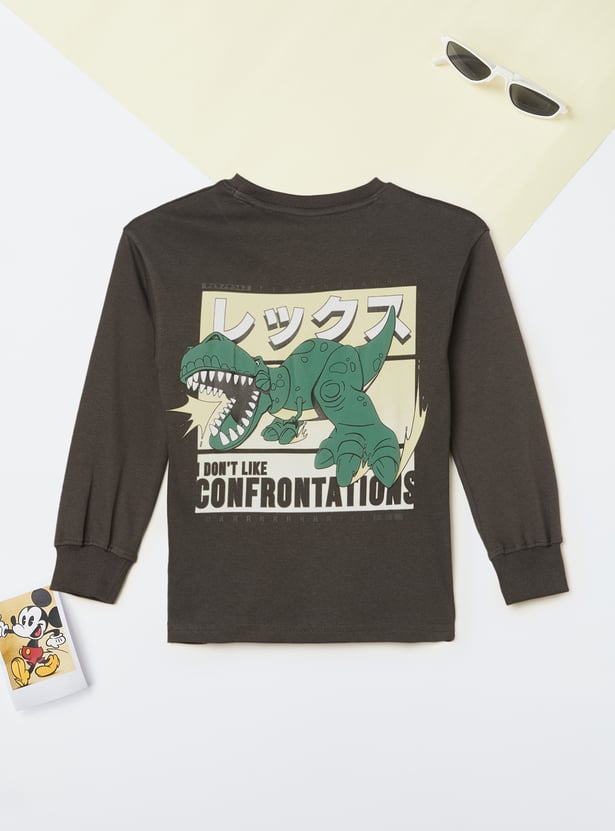 Stay comfortable and on-trend with this printed oversized T-shirt, featuring a classic crew neck, full sleeves, and a ribbed hem for a relaxed fit.