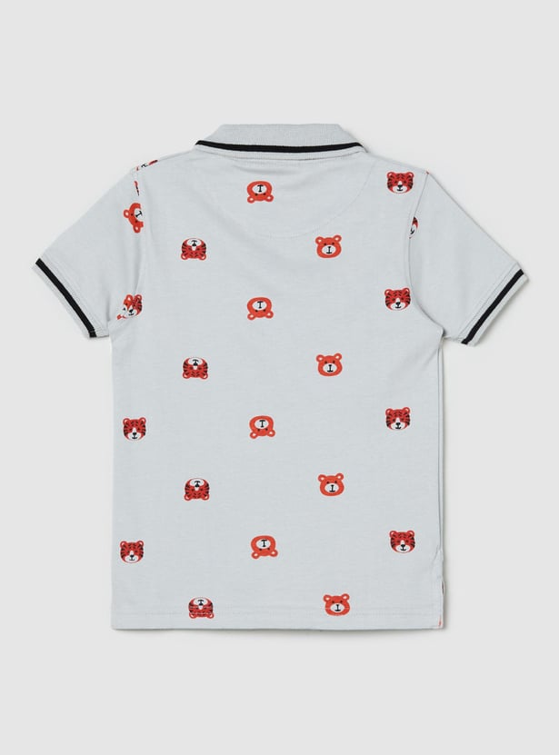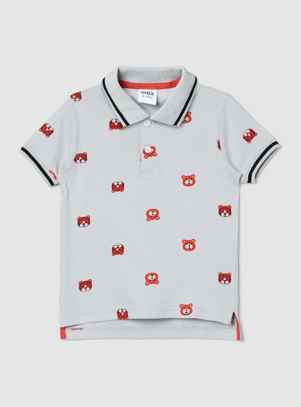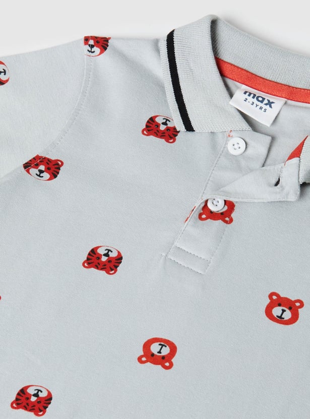 An ideal pick for your little one's casual wardrobe, this printed T-shirt is designed with half sleeves and a polo neckline.