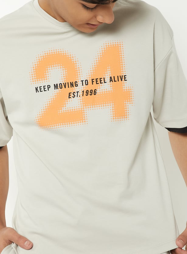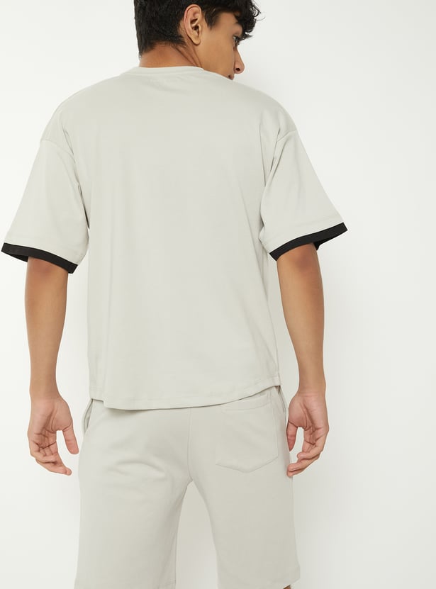 This printed shorts set is perfect for relaxed days and easy style. The printed t-shirt features a classic crew neck and half sleeves, paired with matching solid shorts that offer a comfortable fit with a drawstring closure.