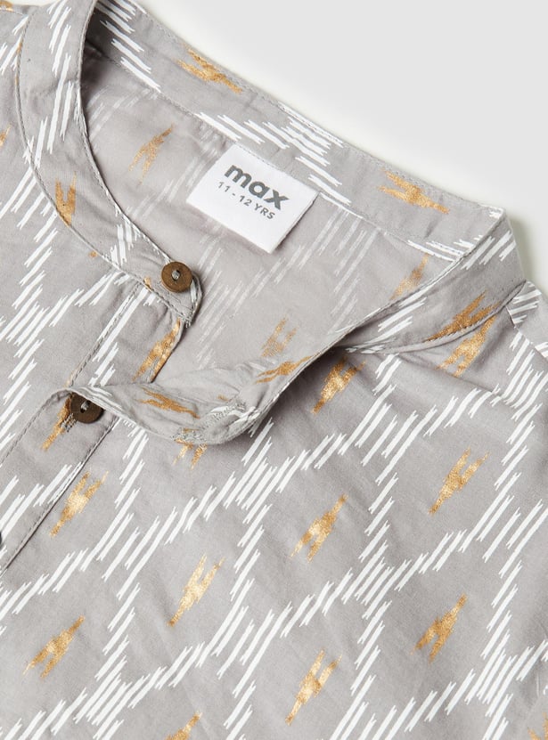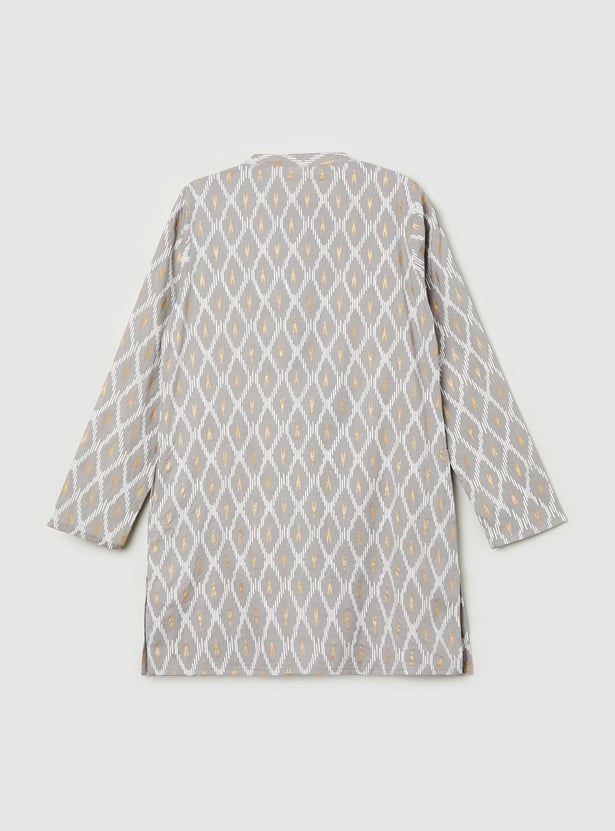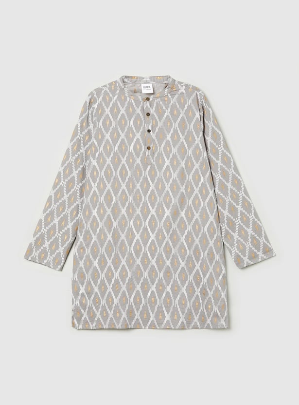 Give your child an ethnic twist with this kurta that features a printed pattern on the surface with full sleeves and a band collar neck silhouette.