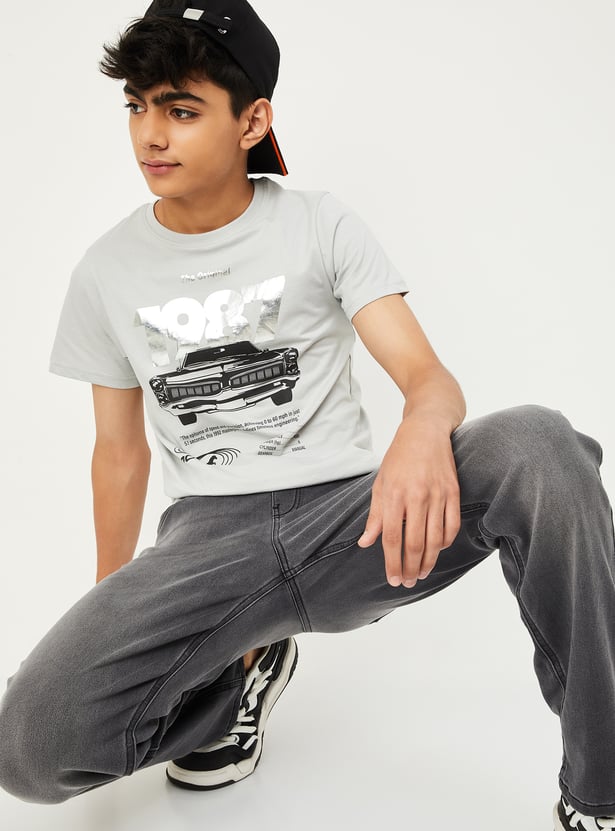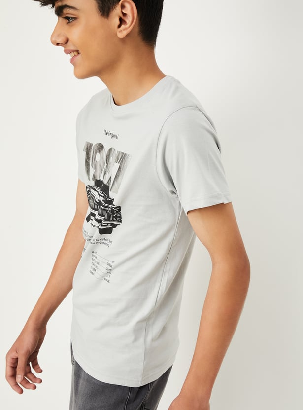 Make a statement in comfort with this printed T-shirt, designed to add personality to your everyday style. Featuring a classic crew neck and half sleeves, it offers a relaxed fit perfect for laid-back days.
