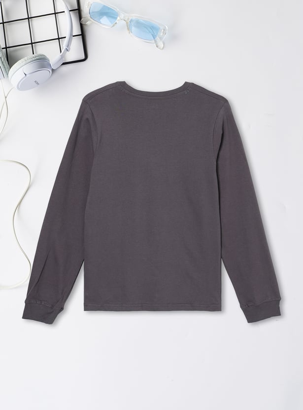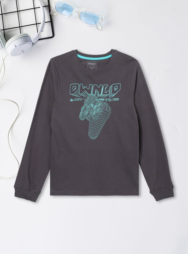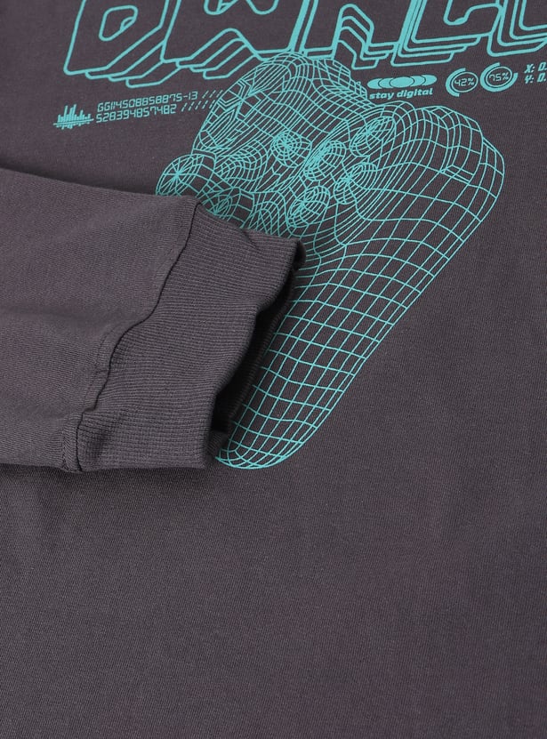 Add a stylish touch to your casual wardrobe with this printed t-shirt, featuring a classic crew neck and full sleeves. The vibrant print brings personality and contemporary flair to everyday wear.