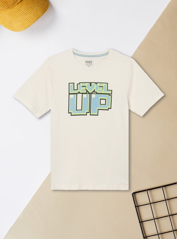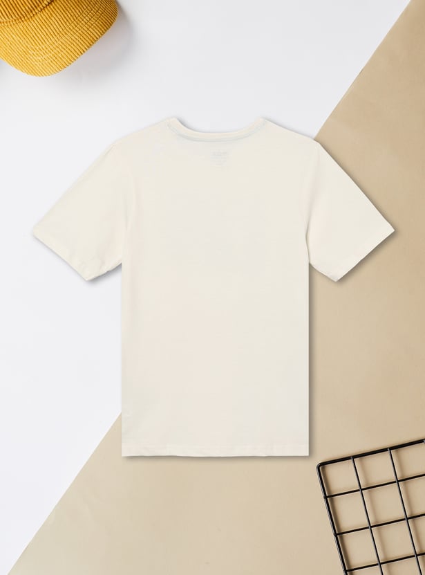 Add a pop of personality to your everyday look with this printed t-shirt, designed with a classic crew neck and half sleeves. The vibrant print brings a fun and casual edge to your wardrobe.