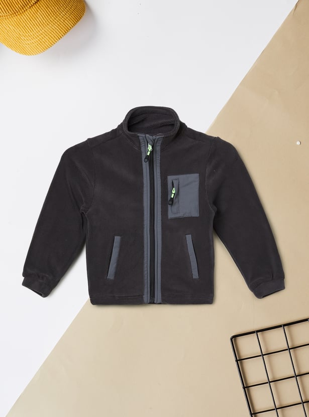 Step out in sleek style with this solid jacket. Featuring a zip closure, full sleeves, and zip pockets, it combines functionality with a polished, modern look.