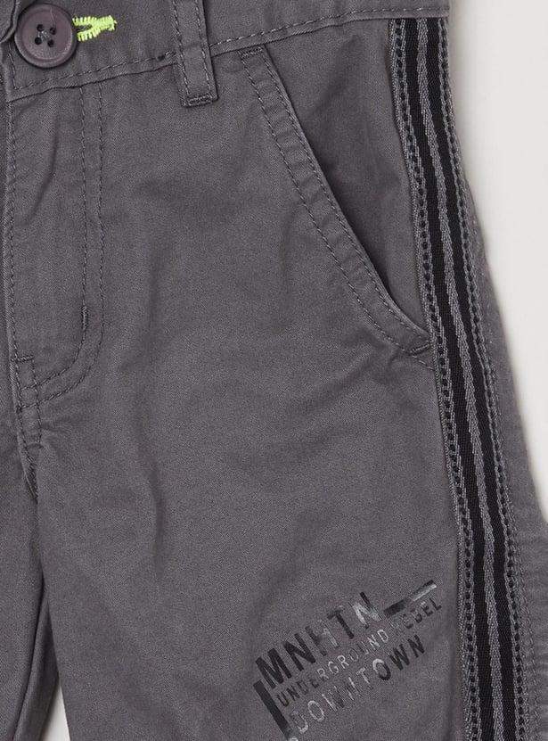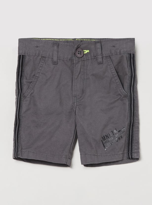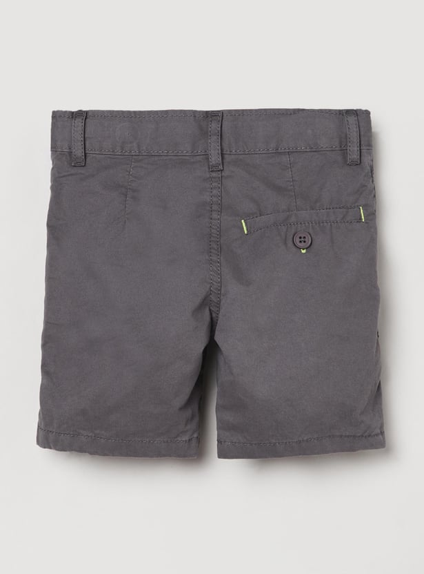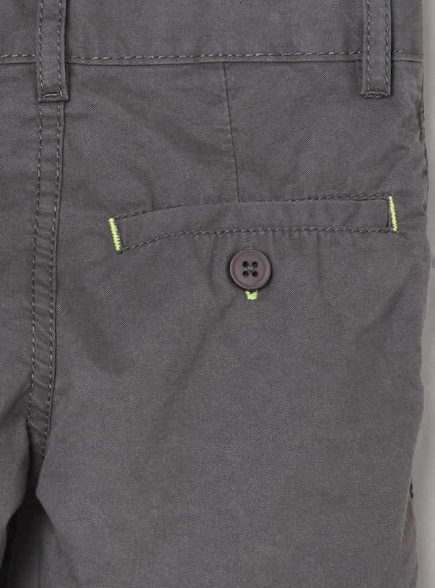An ideal pick for your little one's casual look, this pair of shorts features a solid design and a button-up waist with slanting side pockets.