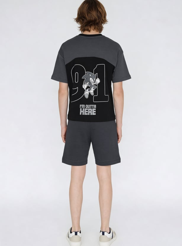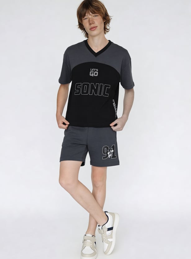 Add a dash of gaming fun to everyday wear – this Sonic the Hedgehog Print shorts set includes a V-neck, half-sleeve top paired with elasticated shorts featuring practical pockets.