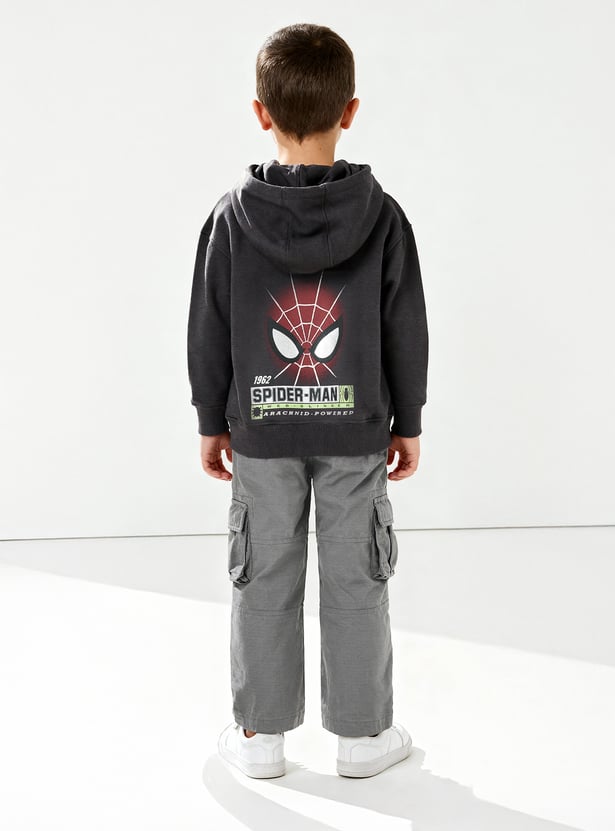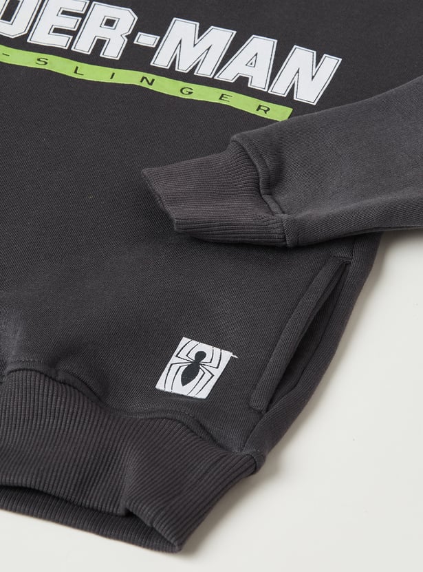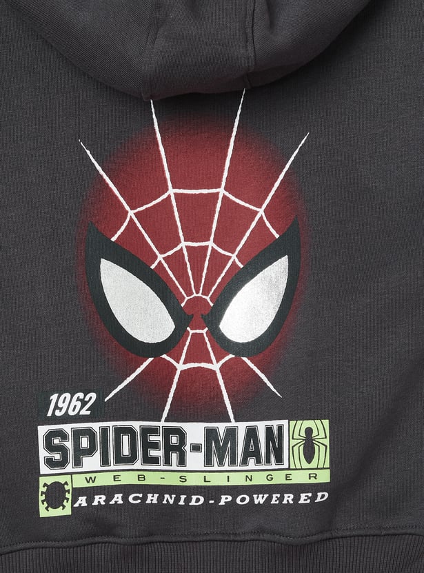 Boys Spiderman Print Oversized Hooded Sweatshirt