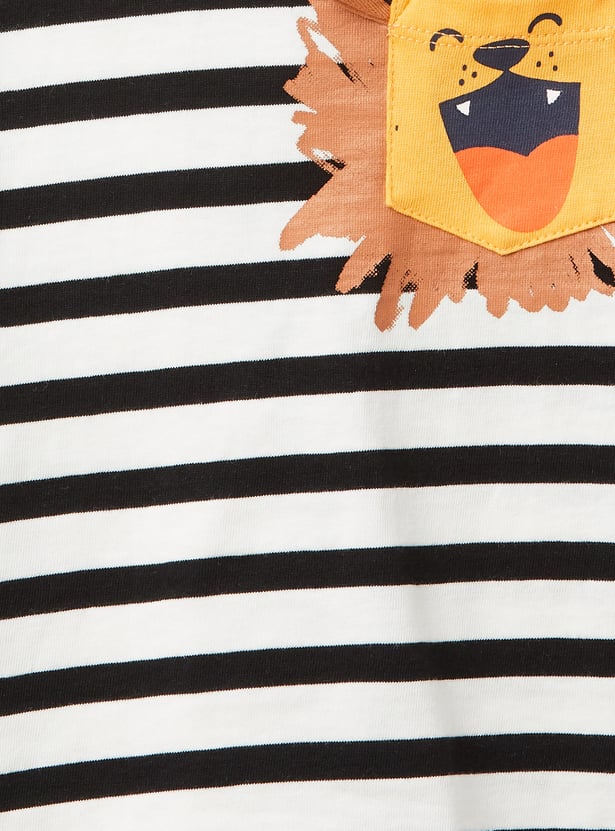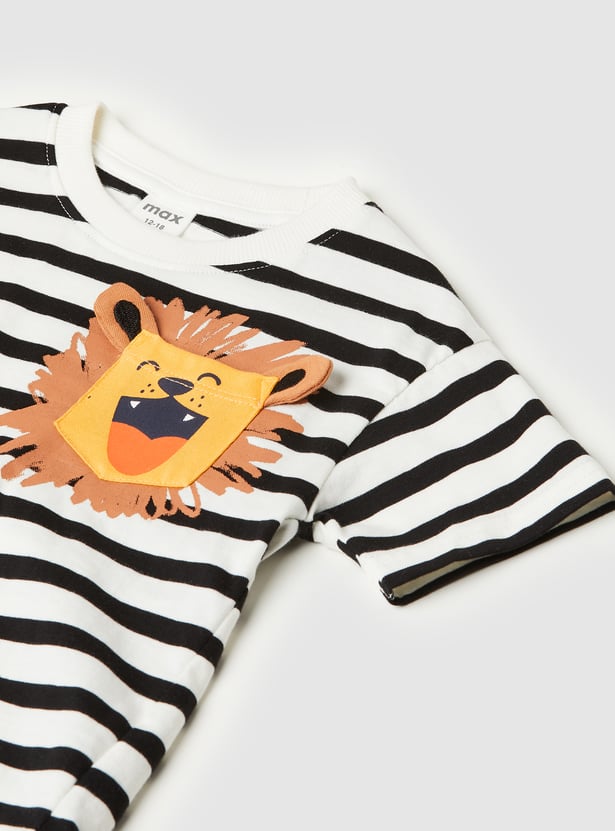 This striped shorts set is perfect for laid-back days, featuring a stylish striped T-shirt with a classic crew neck and half sleeves. It’s paired with comfortable cargo shorts that include a drawstring closure for an adjustable fit.