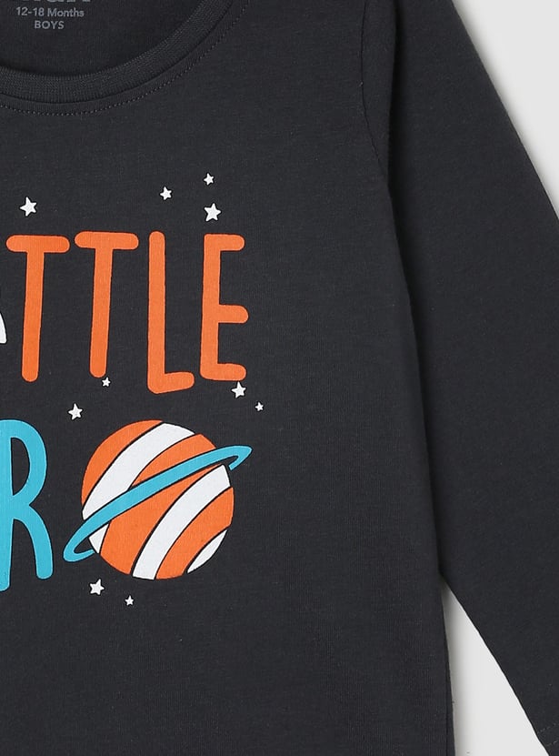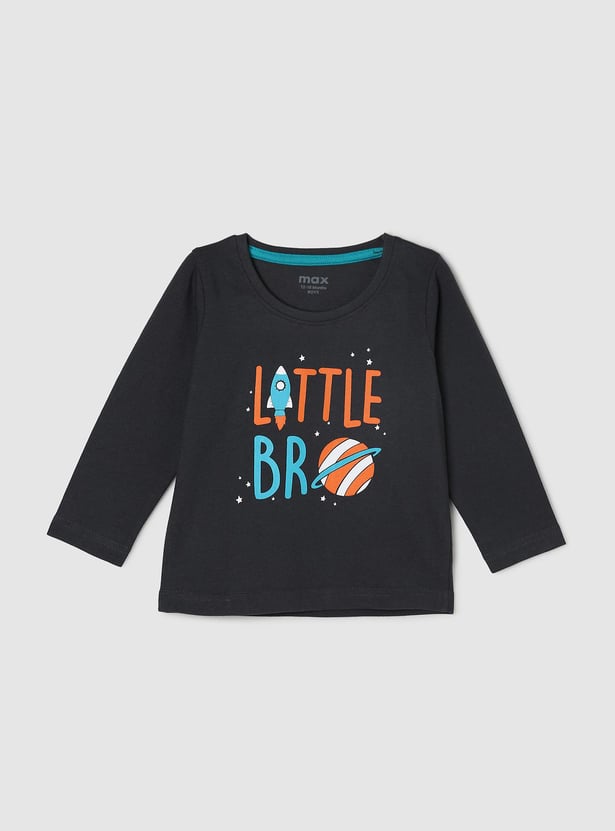 Boys Typographic Printed T-Shirt with Full Sleeves