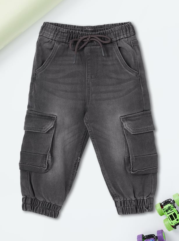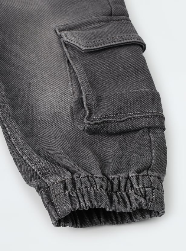 Boys Washed Denim Cargo Joggers