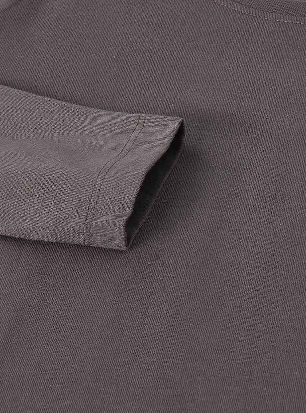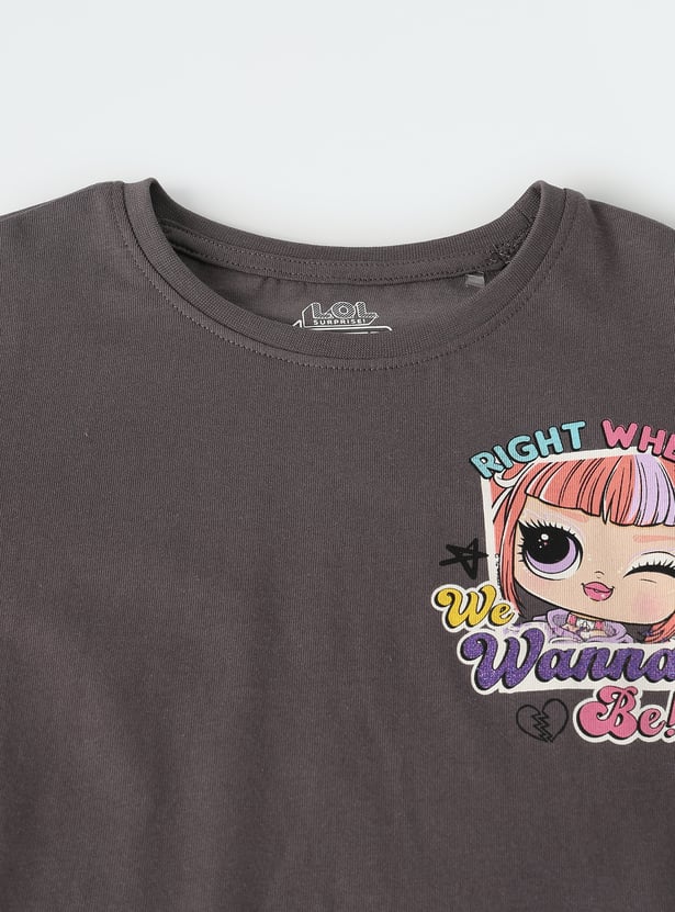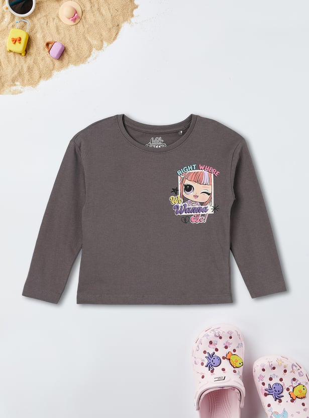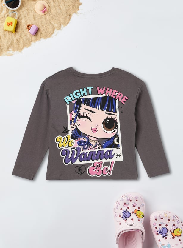 She’ll turn heads from every angle with this T-shirt. Featuring a bold, eye-catching graphic print on the back and front, this tee is perfect for adding a fun twist to any casual outfit. It has a round neck and full sleeves.