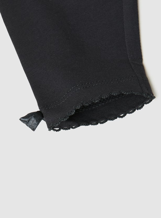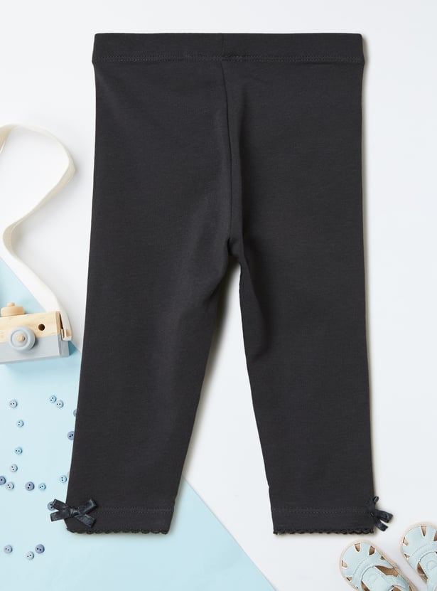 Dress your little one in these leggings, designed with an elasticated waist for a comfortable, adjustable fit. The bow deatil at hem adds a playful touch to their wardrobe while keeping them comfy all day long.
