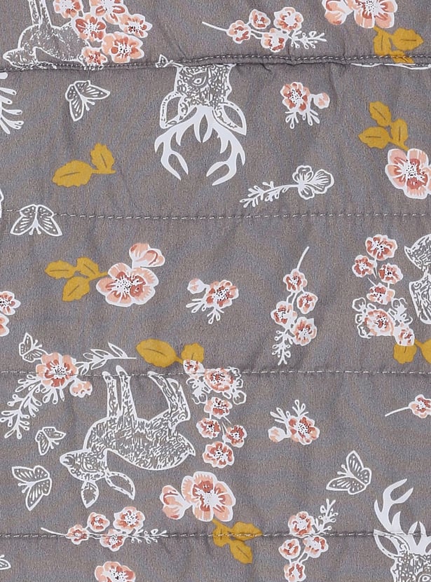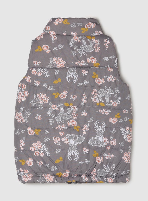 Girls Floral Printed Zip Closure Sleeveless Bomber Jacket