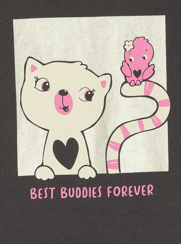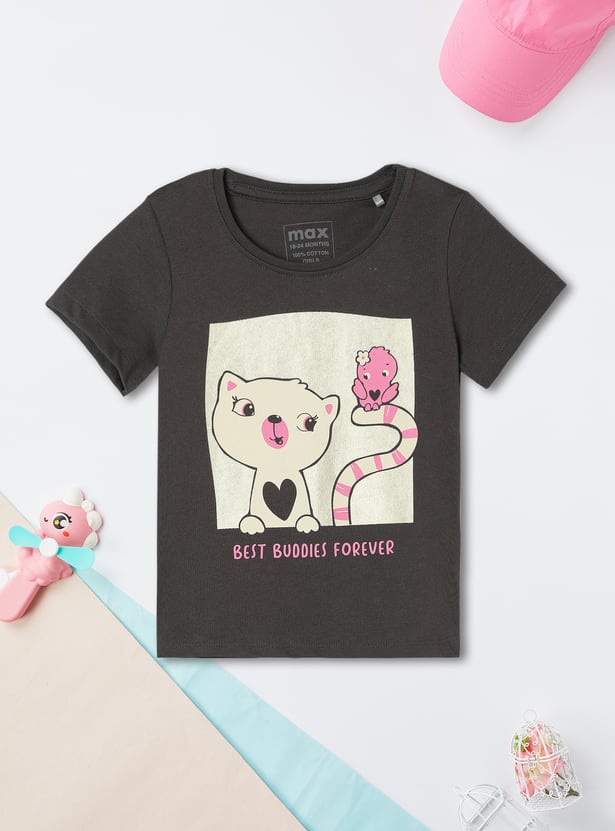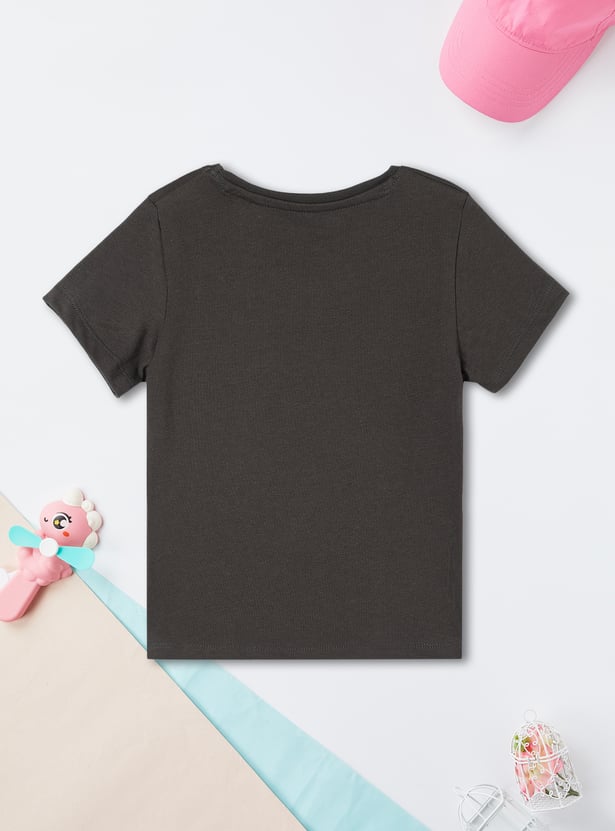 A perfect addition to your kid's casual collection, this T-shirt is highlighted by a bold graphic print. It features a classic round neck and half sleeves, ensuring all-day comfort and effortless style for your little one.