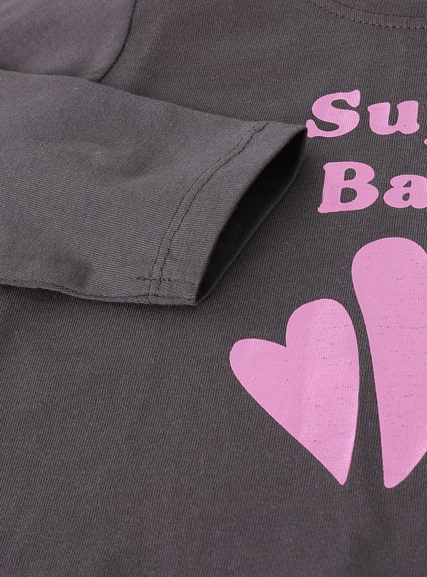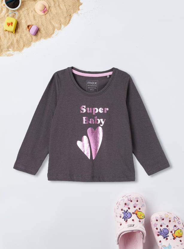 Girls Metallic Print Full Sleeve T-shirt