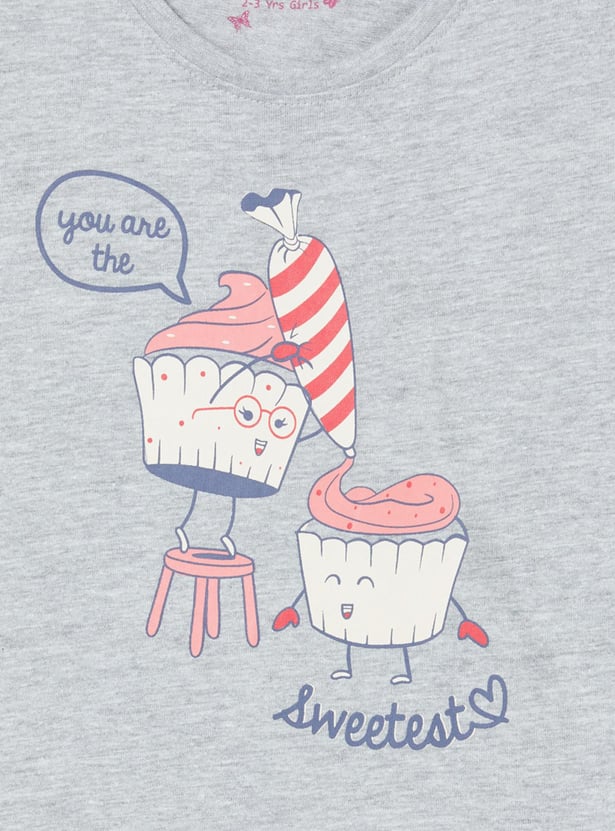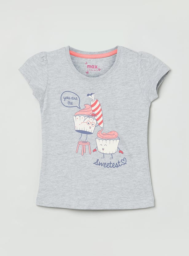 Girls Printed Cap Sleeves T-shirt