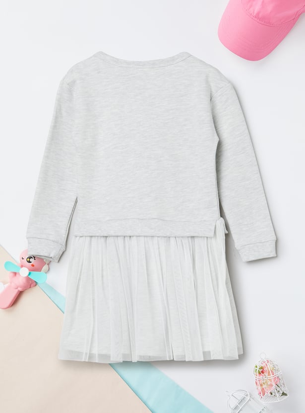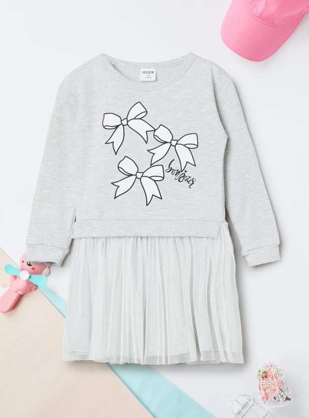 Step out in effortless charm with this printed dress. Designed with a classic round neck and full sleeves, it flows into a graceful flared hem that adds movement and femininity to your look. Perfect for day-to-night wear.