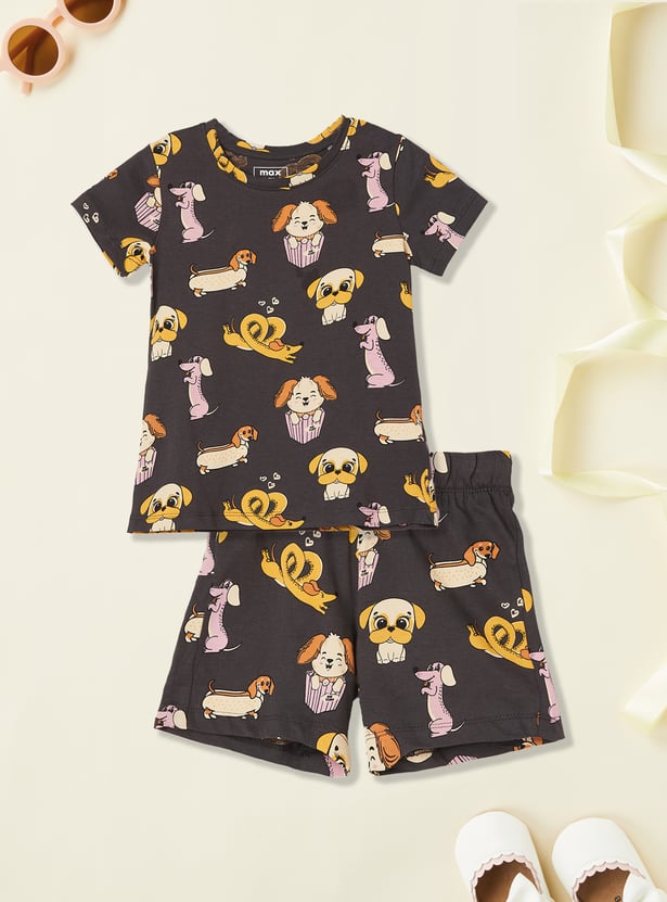Stay stylish and comfortable with this printed sleepwear set. The t-shirt features a round neck and half sleeves, while the matching shorts come with a drawstring closure for a perfect fit. Ideal for casual outings or lounging, this set offers effortless style and comfort.