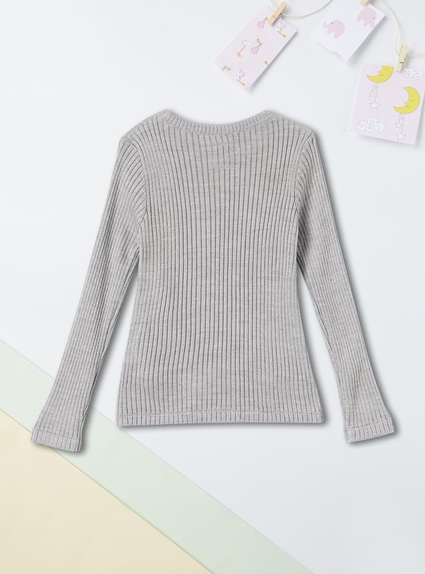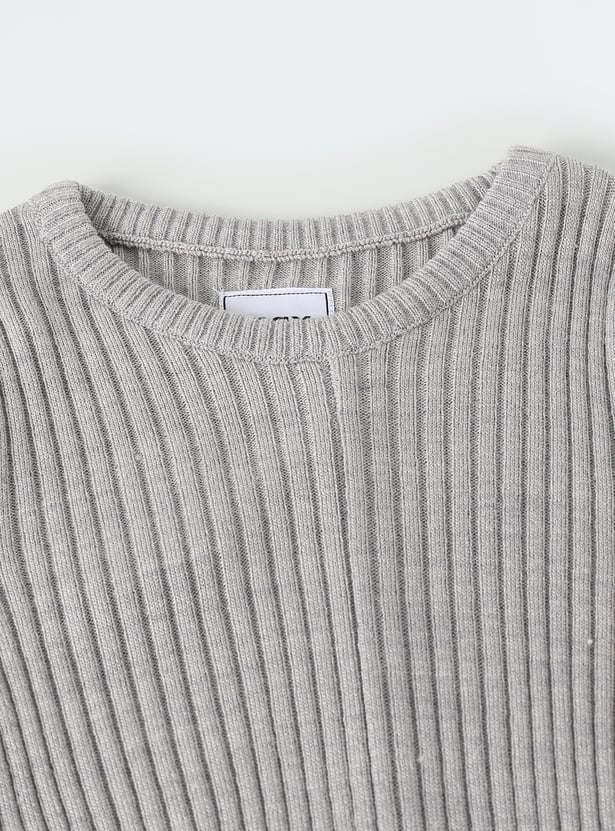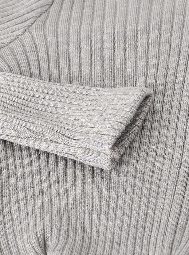 Set your kid up for winter with this cosy sweater. Featuring a round neck and full sleeves, it’s designed with a ribbed surface for a snug and comfortable fit. The twisted front detail adds a trendy touch, making it both stylish and functional.