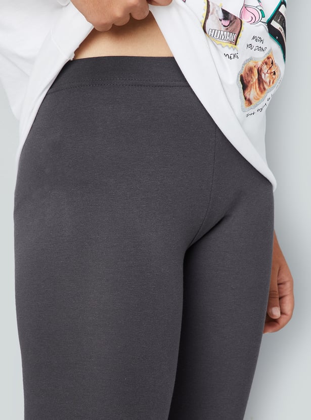 Girls Solid Skinny Fit Leggings
