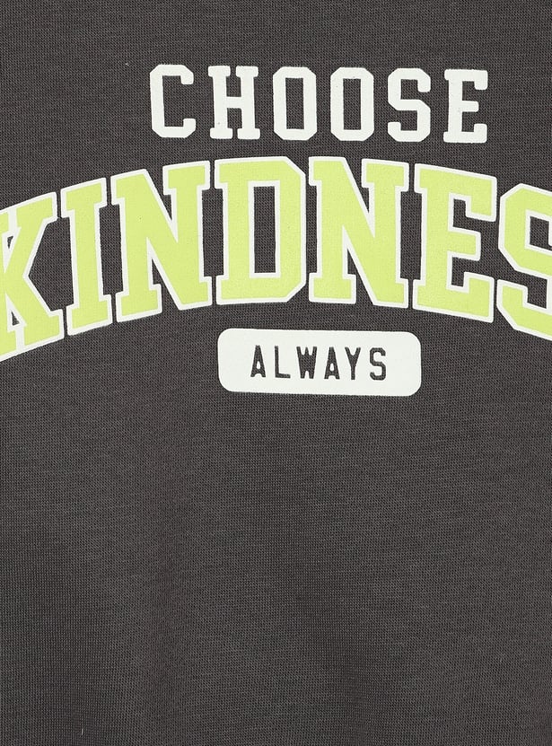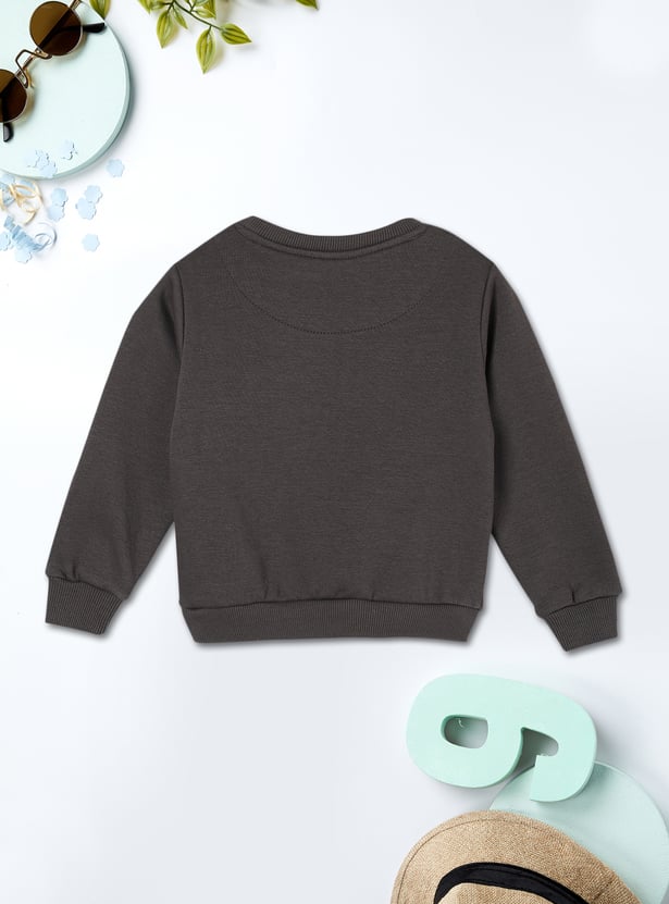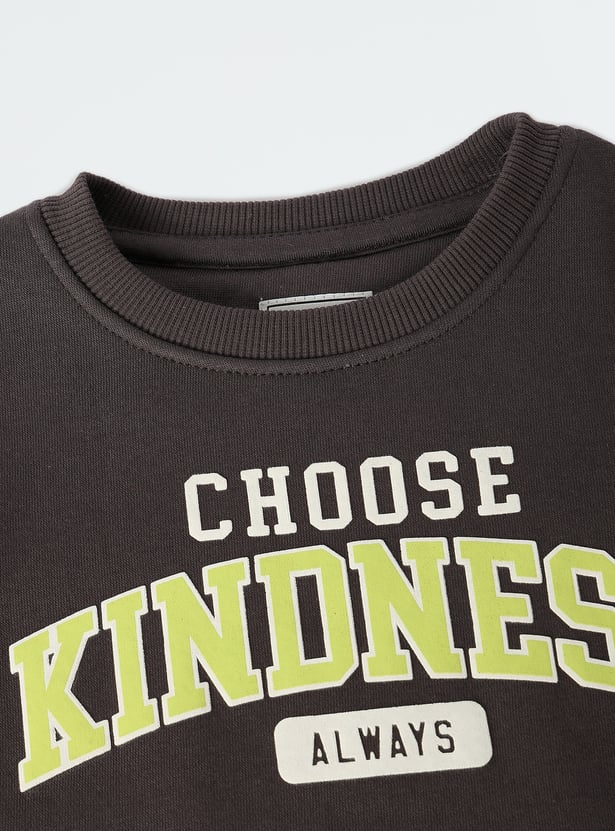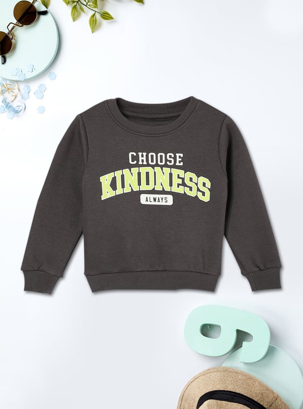 This sweatshirt will keep your kids warm and cosy during the winter. It features a typographic print, full sleeves, a round neck and ribbed hem.