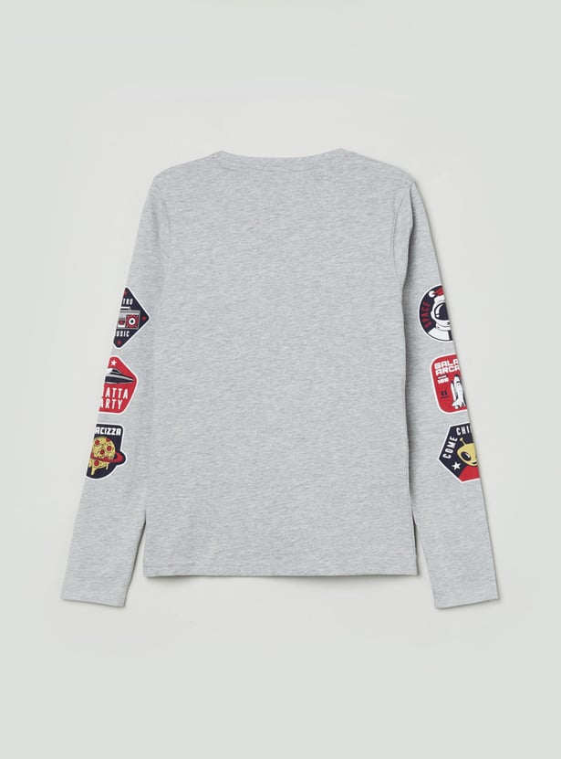 An ideal pick for your little one's casual wardrobe, this printed t-shirt is designed with full sleeves and a crew neckline.