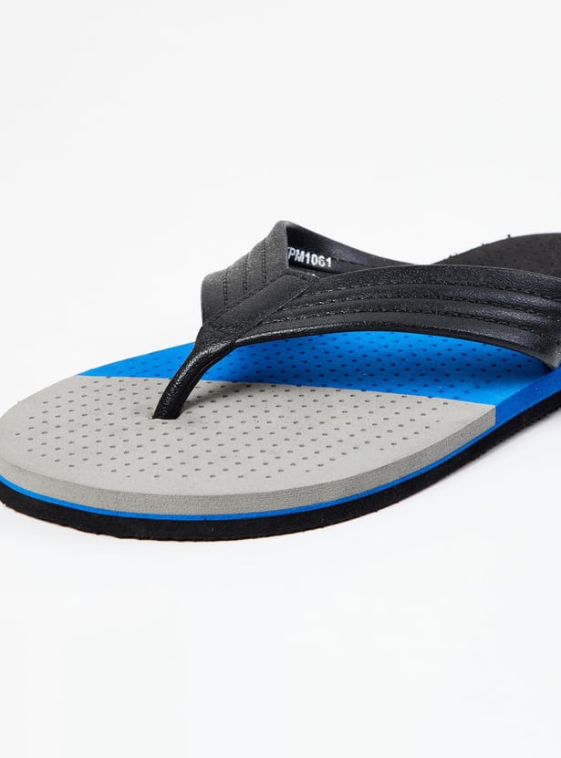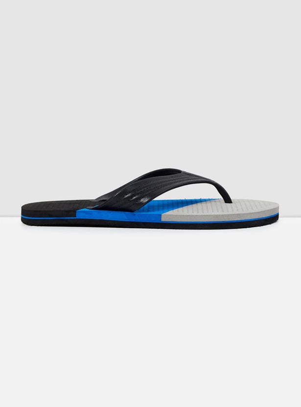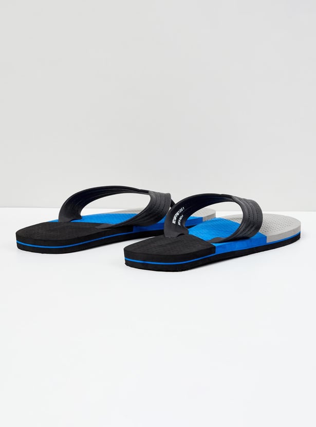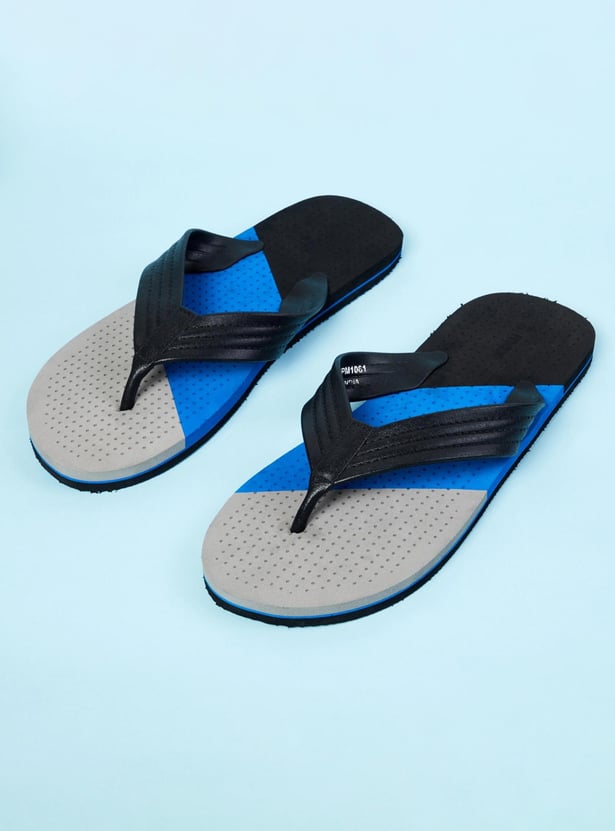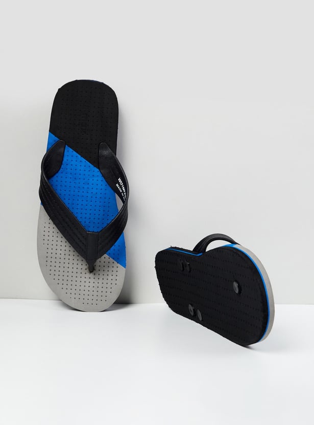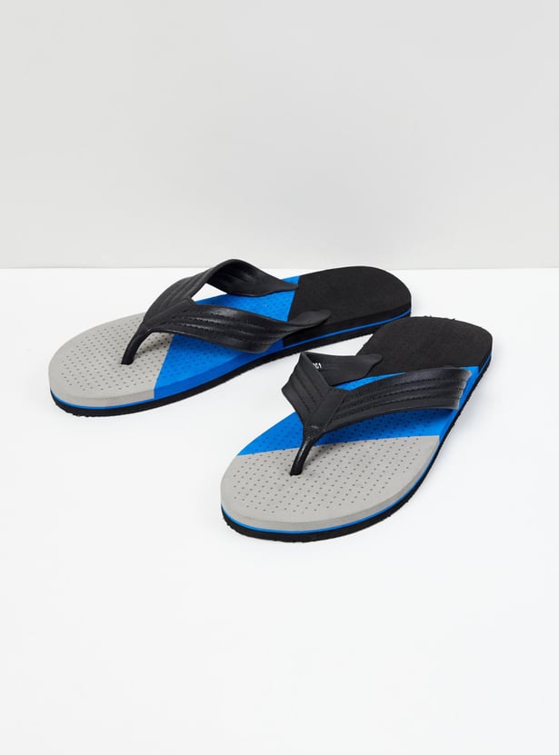 Breezy and easy, this pair of slippers is detailed with a colorblocked pattern surface and features a soft and comfortable footbed.