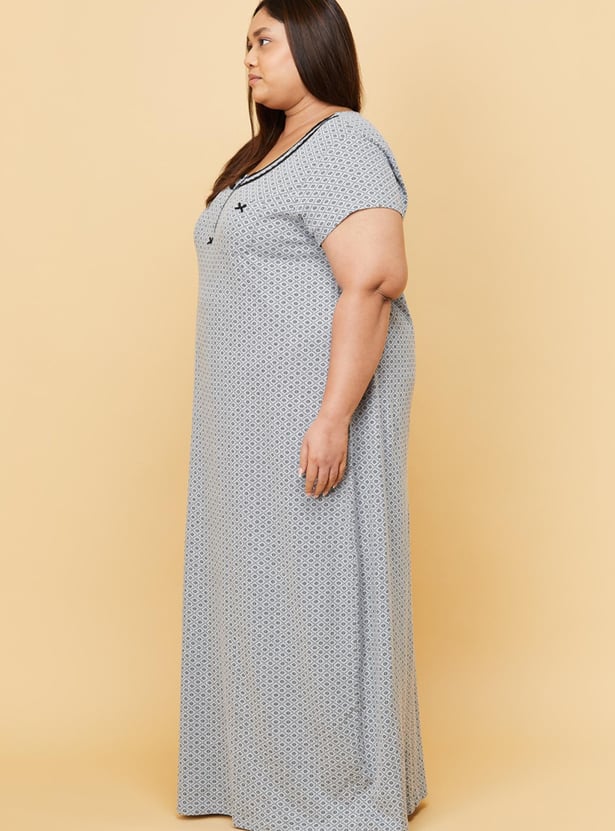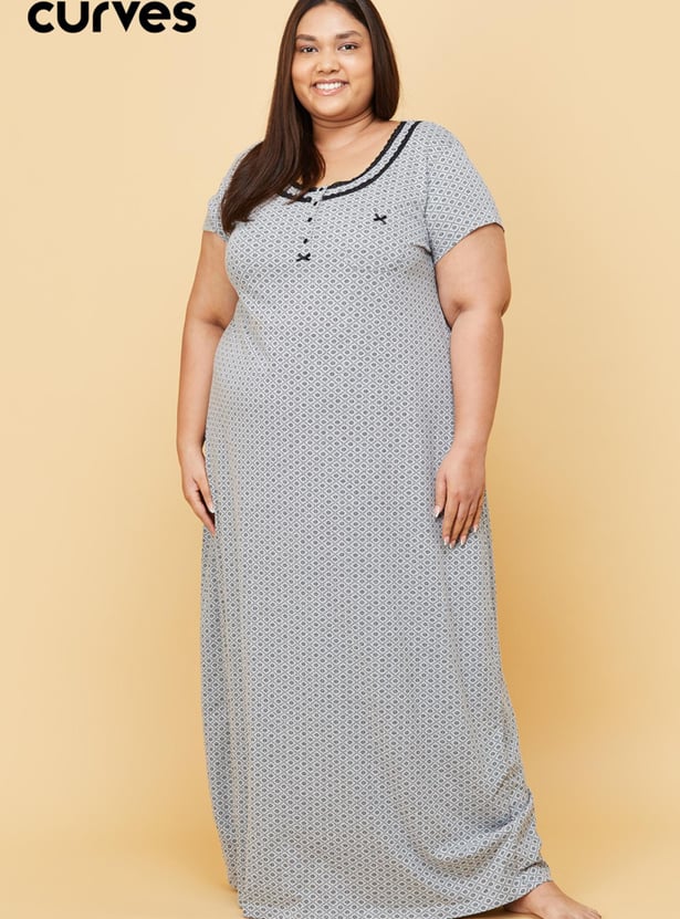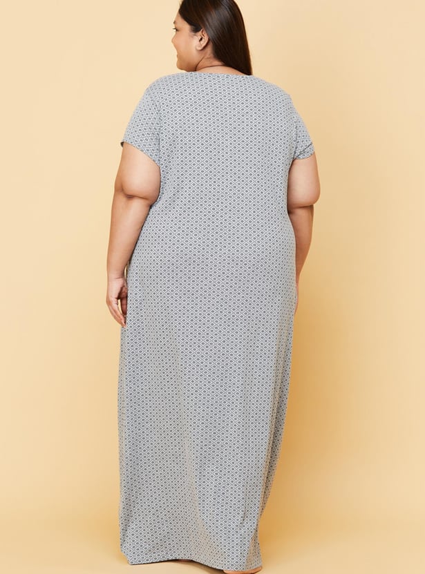 MAX Women Printed Half Sleeves Round Neck Night Gown