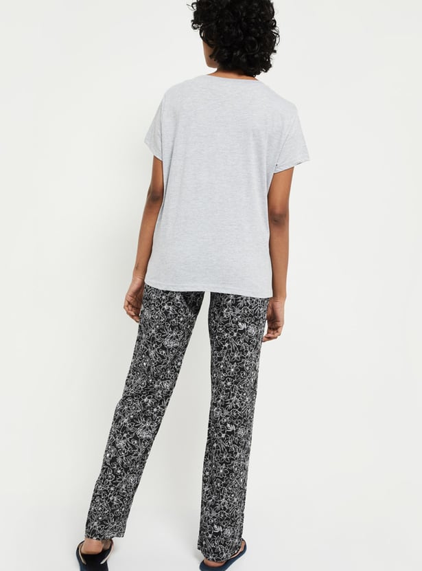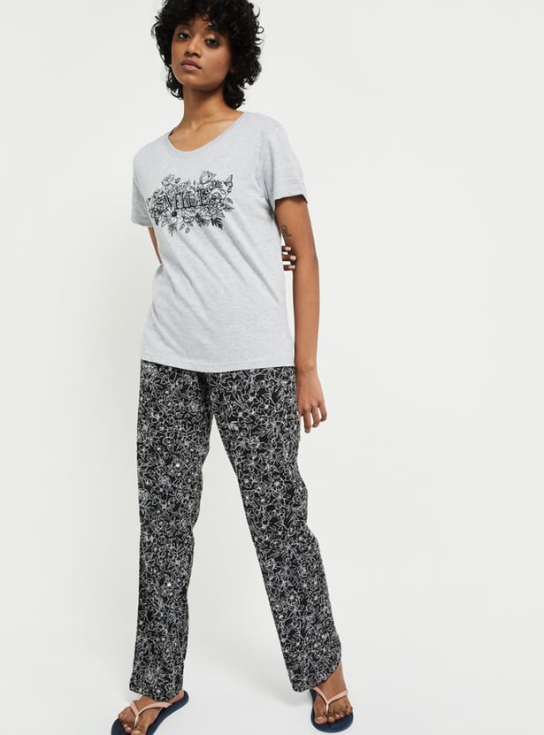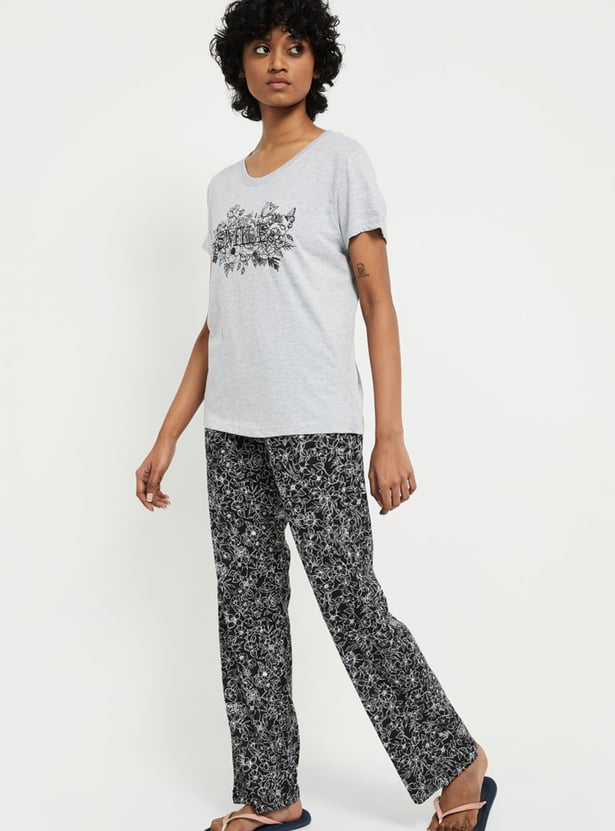 MAX Women Printed Lounge Pants with T-shirt