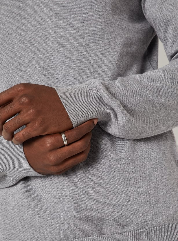 Stay warm in style with this knit sweater, featuring a classic V-neck, full sleeves, and a ribbed hem for a snug fit. Perfect for layering on cooler days with a touch of refined texture.