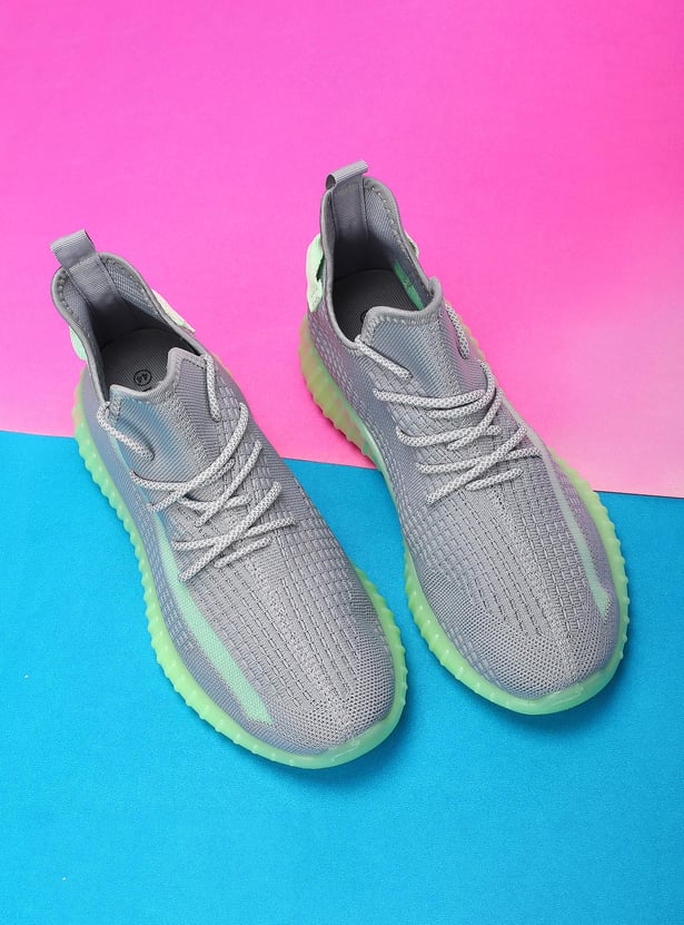 Men Mesh Panelled High Ankle Lace-Up Sports Shoes