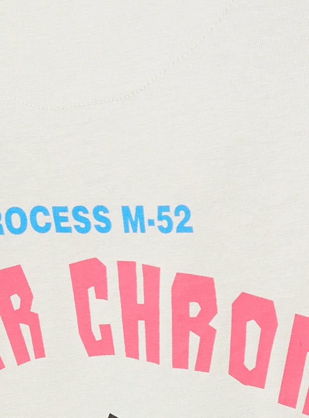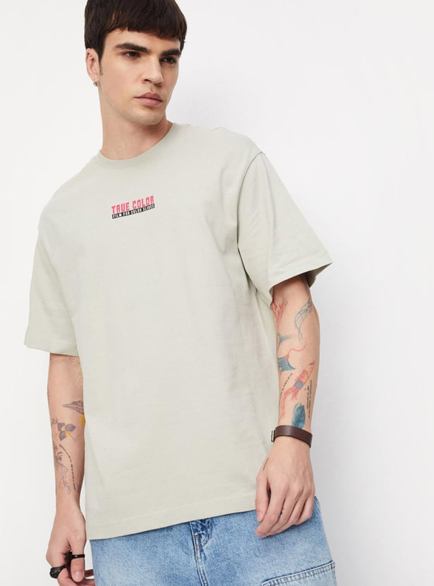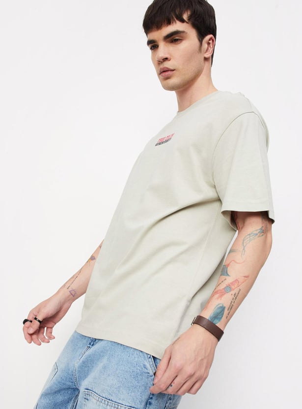 Sport a carefree look in this T-shirt updated with a back graphic print. The relaxed fit design comes with a crew neck, short sleeves, and a typographic print on the chest. Pair it with jeans and sneakers to ace your look