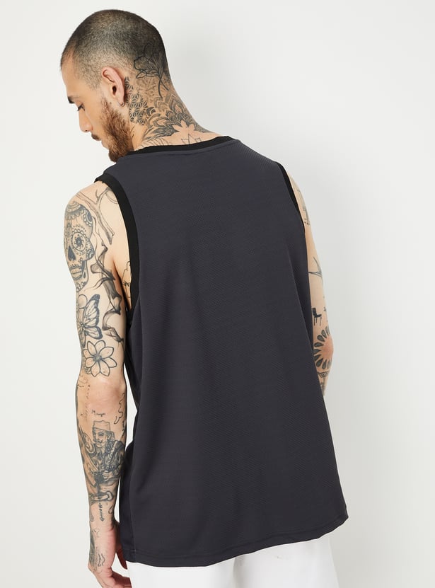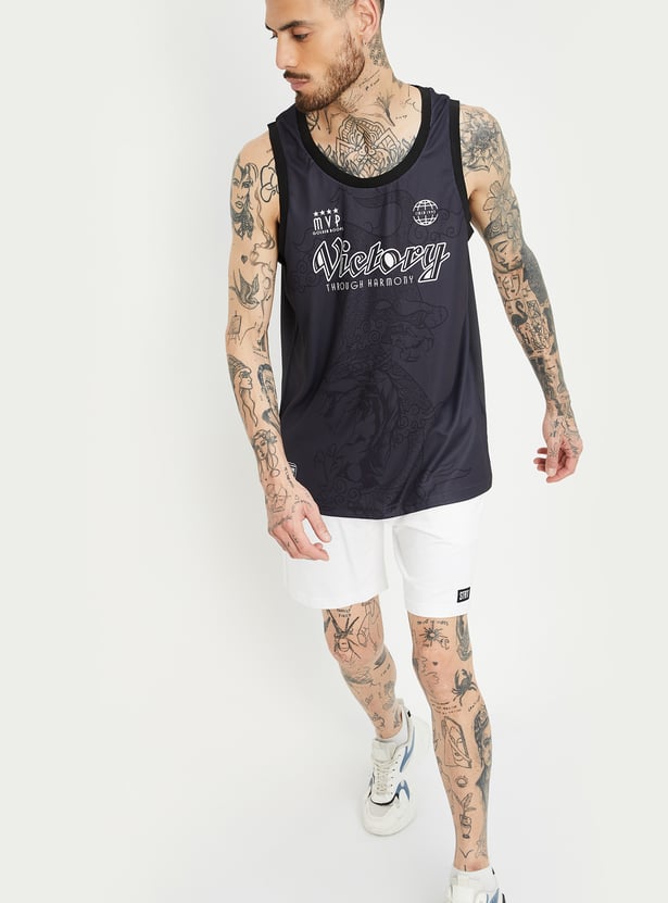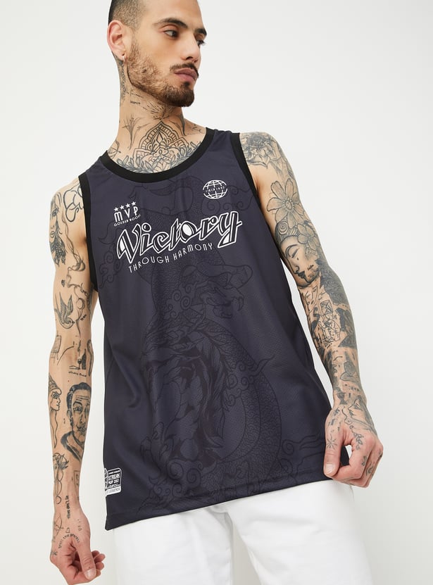 Stay cool and stylish with this printed oversized sports t-shirt. Featuring a sleeveless design and round neck, it offers a sleek, comfortable fit perfect for workouts or casual outings.